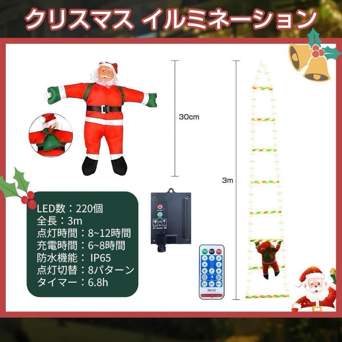 太陽光発電とUSB充電 イルミネーション ライト】イルミネーション ライトは屋外でも屋内でも設置可能で、電源の位置を心配する必要がありません。昼間に自動的に充電し、太陽光から電力を変換し、電気代も配線も不要で便利です。省エネルギーを実現しつつ、非常に環境に優しく、電気代や設置スペースの心配がありません!太陽光パネルに加えてUSBポートとUSB充電機能も備えており、曇りの日や雨の日でも楽しめます。日光の下で8時間充電すれば、最大10時間使用可能です。サンタクロースとイルミネーション ライトの人気の組み合わせは、祝祭期間中の屋内外の完璧な装飾です。220個の電球、満足のいく12個の垂れ幕部分。