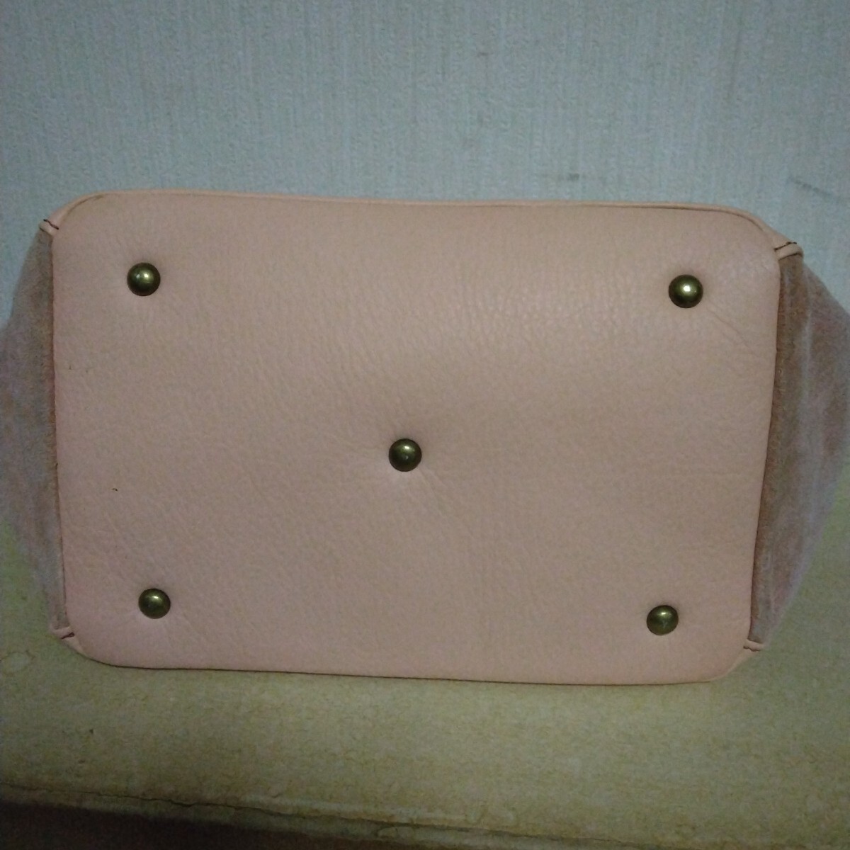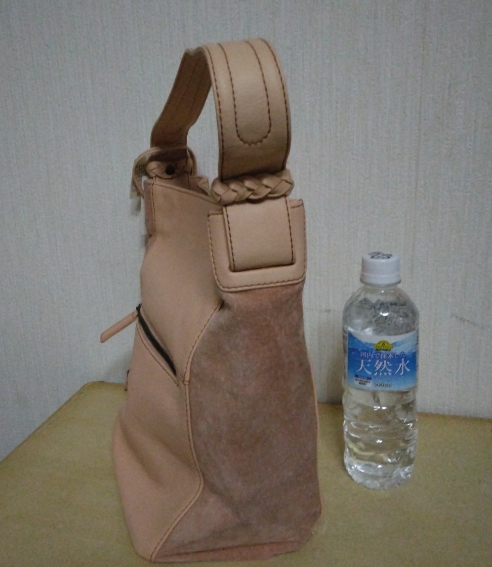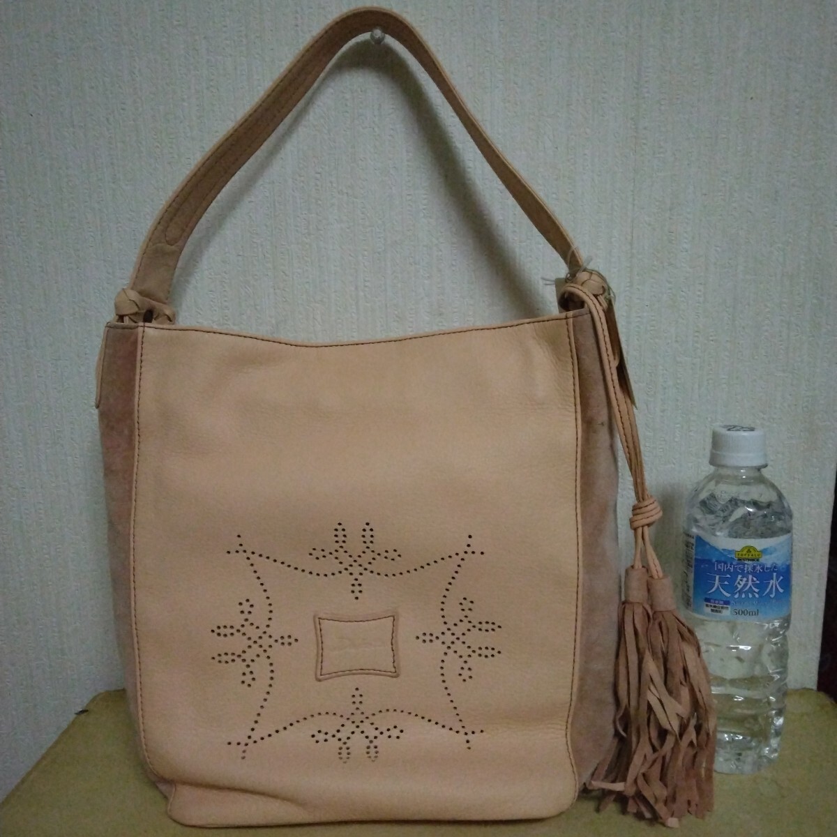 ダコタのショルダーバッグ、ベージュとピンクが混じったような可愛らしいお色です。