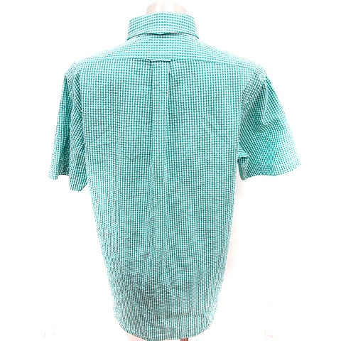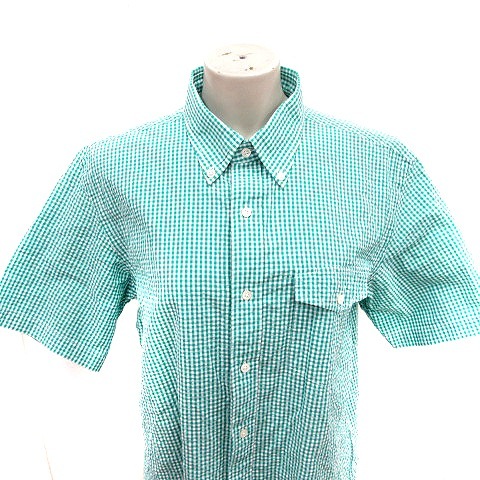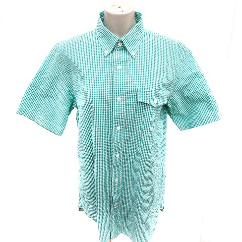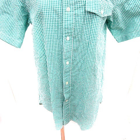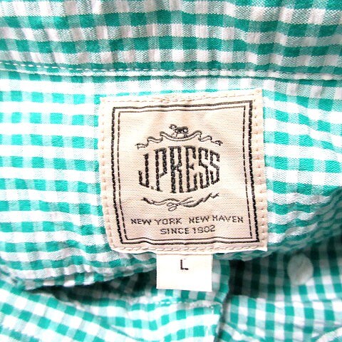ジェイプレス J.PRESS シャツ ブラウス ボタンダウン 五分袖 ギンガムチェック L 緑 レディース