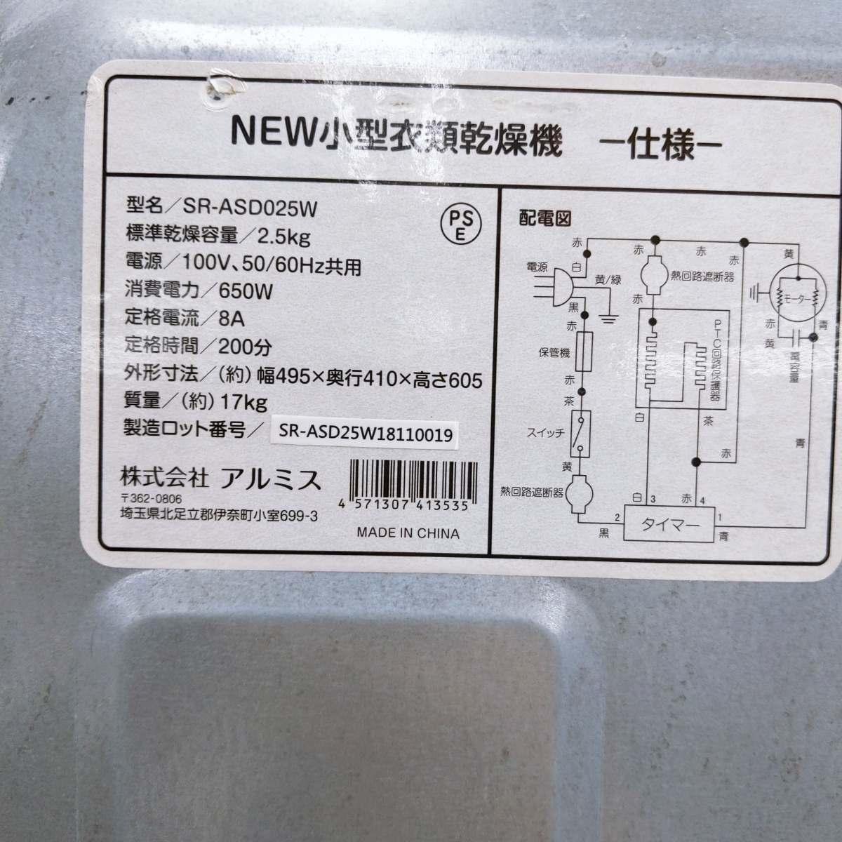 ■型番:SR-ASD025W