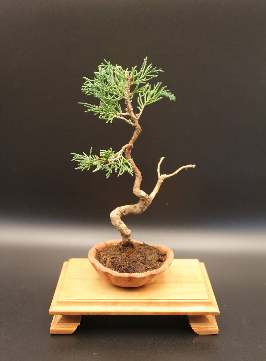 自然な曲がりを活かした上品な真柏の模様木盆栽です。