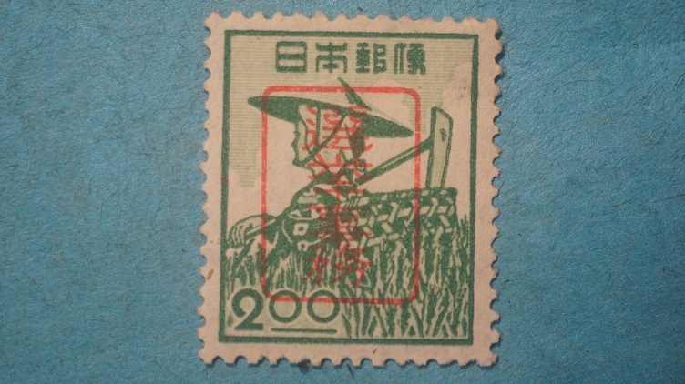 産業図案切手 2円 農婦 昭和すかし 選挙事務 未使用LH良品 5