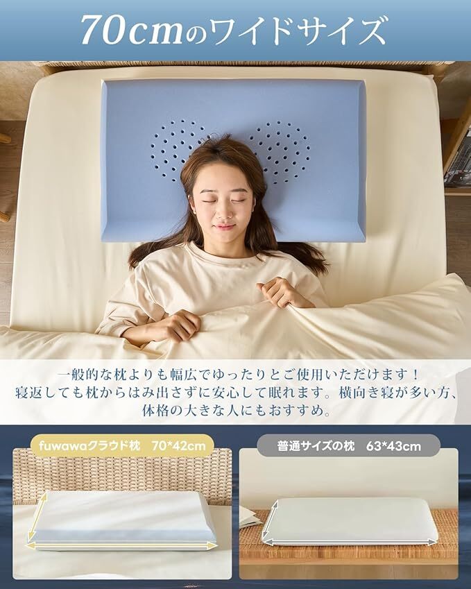 fuwawa 枕 首が痛くならない 低め 低反発 薄枕 深い眠りまくら 【高級x5つ星ホテル仕様】特許取得 クラウドまくら (70*42*10cm) 1016