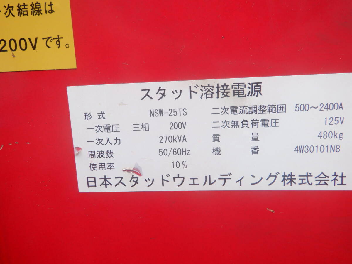 建 築 用 ス タ ッ ド 溶 接 装 置 200V N S W - 2 5 T S 日本スタッドウエルディング(株)製 附属ケーブル付き