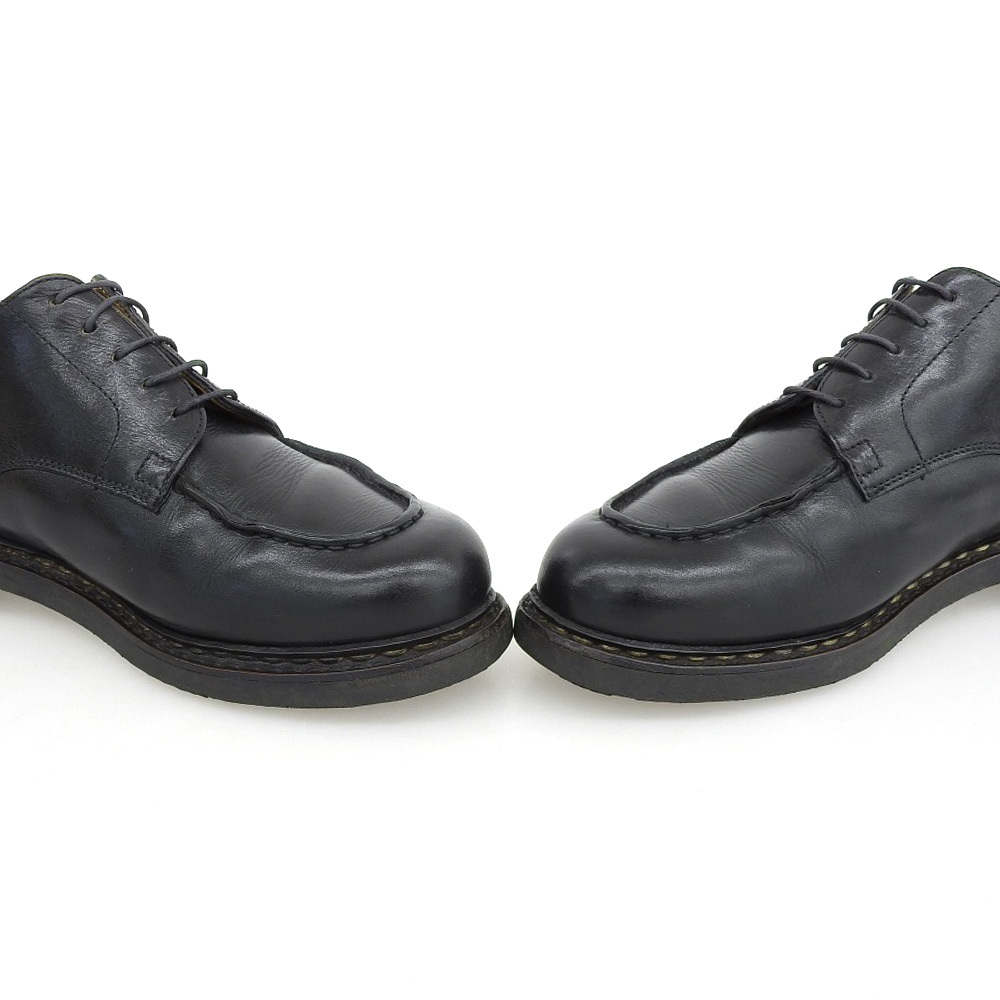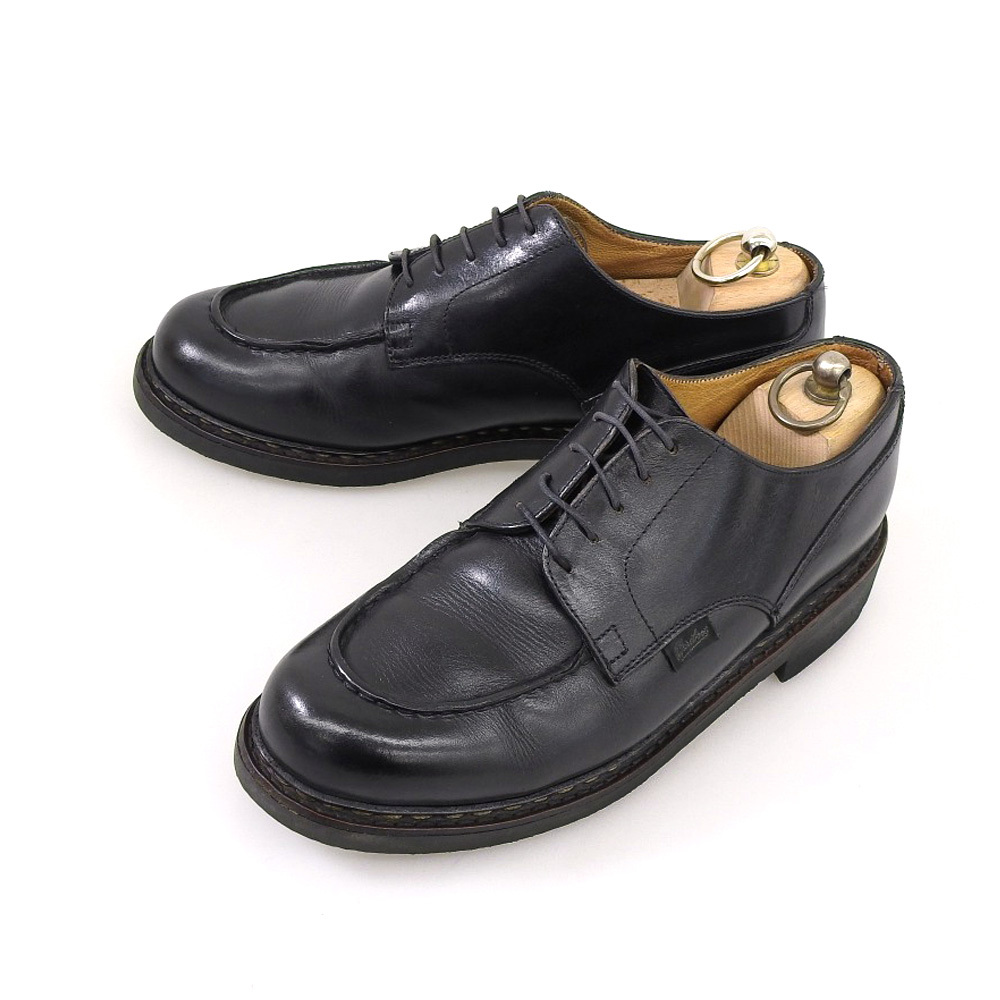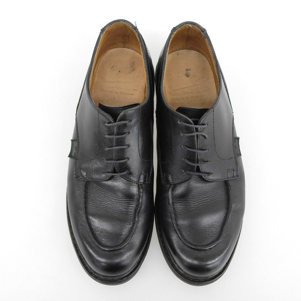 | 【 商品名 】 【10575SM】パラブーツ CHAMBORD(シャンボード)Uチップ ブラック リスレザー サイズ6.5 Paraboot 高い撥水性から全天候に対応出来るパラブーツのリスレザーを使用した代表作シャンボードはオールシーズン活躍してくれる万能な一足。インソックなどに使用感がありますが、純正リフトはまだまだ残っています。 ・メーカー:パラブーツParaboot ・表記サイズ:6.5 表記サイズに関するページはこちらです。 ・アウトソール全長:29cm (※おおよそのサイズとなります) 最大幅:10cm ・アッパー:リスレザー ・カラー:ブラック ・付属品:無し ・程度【Bランク】 ※新品ではありません。USED品であることをご理解の上、入札をご検討下さい。