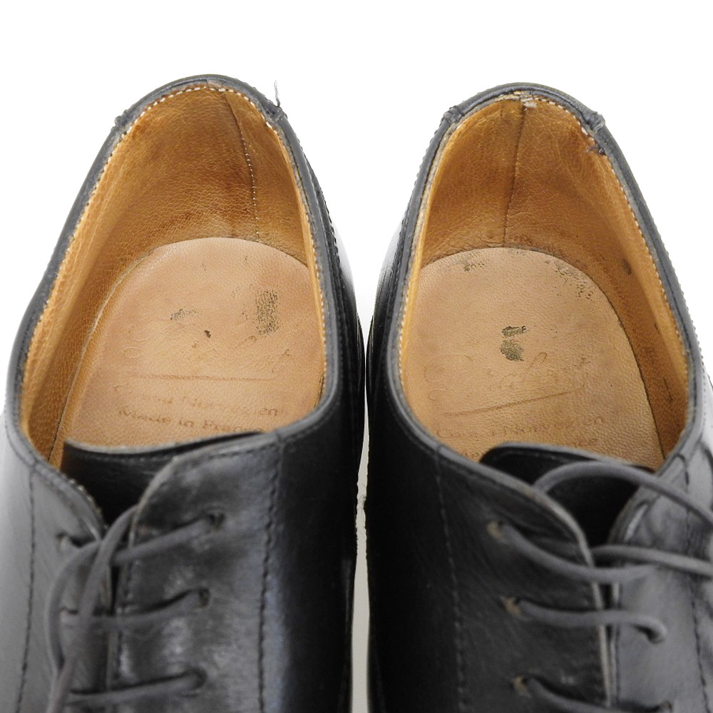 更に詳しい状態ランクの説明は以下を御覧ください。 なお、コードバンや、ミュージアムカーフやアンティーク仕上げを施されたレザーの場合、状態ランクと別途下記もご覧ください。 [Nランクについて] 当方で正規取扱を行っている新品の商品です。シューケア用品、シューツリー等の備品がこちらに該当します。 [Sランクについて] 新品同様品。未使用品や新古品。室外での着用のない、未使用や未開封の状態のまま保管されていたお品〜室内での試着程度までがこちらに該当します。 [SAランクについて] SランクとAランクの間の中古品。外見だけでは新品に履き皺がついた程度の未使用に近い極美品。およそ使用1〜10回数未満と推定されるお品物です。傷なども見受けられず、ソールの削れ、中底の沈みなどもほとんど感じられない状態。 [Aランクについて] 使用感がほとんどない美品。微かなの傷・汚れなどは見受けられるものの、凝視しなければわからないお品。ソールの削れやリフトの削れも数ミリ程度で、補強や交換も特に必要のない程度。 [ABランクについて] AランクとBランクの間の程度の中古品。一部に傷・シミ・ヤケ・汚れ・擦れが見受けられるものの、使用上問題ない状態。未使用〜修理時期の間ぐらいの、ある程度馴染みも出てきた着用感のお品。 [Bランクについて] 傷・シミ・ヤケ・汚れ・削れなどがある中古品。概ね使用上問題のない状態。元々のリフトから交換時期・または既に削れのため交換されたぐらいの、ソールや出し縫いも全体的に削れが感じられるお品など。 [BCランクについて] BランクとCランクの間の程度の中古品。大きな傷・シミ・ヤケ・汚れ・削れや、一部に破れ・クラック・芯の潰れなどが一部ある訳アリ品。 [Cランクについて] ジャンク扱いの中古品。大きな傷・シミ・ヤケ・汚れ・削れや、破れ・クラック・芯の潰れなどが複数箇所以上に及ぶ状態。 [※コードバンを用いた品物について] コードバン(レアカラーを含む)を用いた素材は、製造工程や性質上、カーフに比べ革の製造段階(新品時)から色ムラやシミ、インクシミ、色味の個体差が多くございます。ブランド正規店の検品も使用上問題ないとされて販売されている箇所にあたり、それぞれの個体を愉しむという方針上、許容の上ご検討ください。 [※ミュージアムカーフ・アンティーク仕上げの品物について] 製造の性質上、全体や部分的に色ムラがございます。またハンドフィニュシュ(手仕上げ)を行っているメーカーやブランドの場合、個体によって色味やムラの出し方に個体差が生じる場合がございます。予めご了承くださいませ。 他の出品リストを「サイズ別」で以下ご確認いただけます。 ・表記サイズ3〜6.5の革靴はこちら ・表記サイズが7〜8.5の革靴はこちら ・表記サイズが9以上の革靴はこちら ・その他表記サイズの革靴はこちら ![]() |