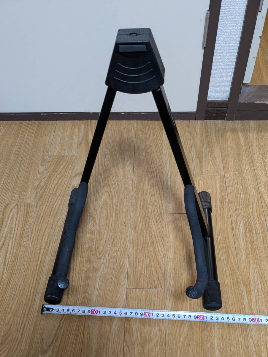 アコースティックギター・エレキギター用のギタースタンドです。開脚角度を最大に調整すれば安定感抜群だと思います。