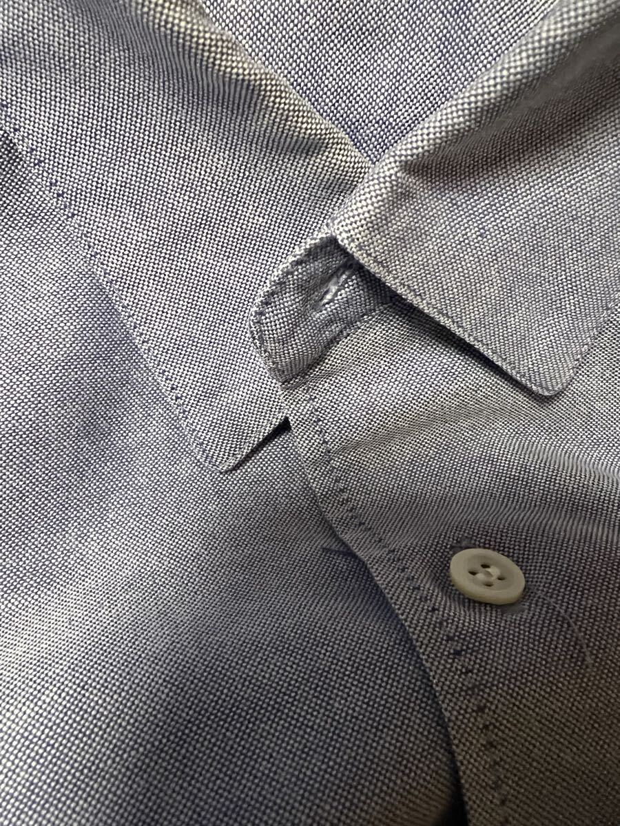 一見するとボタンダウンには見えませんがボタンが表に出ないように工夫されています。
