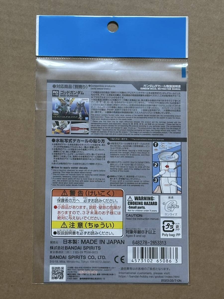 ガンダムデカール 138 RG 1/144 ゴッドガンダム用 新品未開封品 水転写式デカール 機動武闘伝Gガンダム ガンプラ リアルグレード No.138