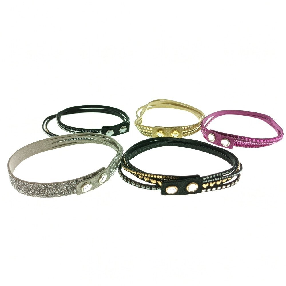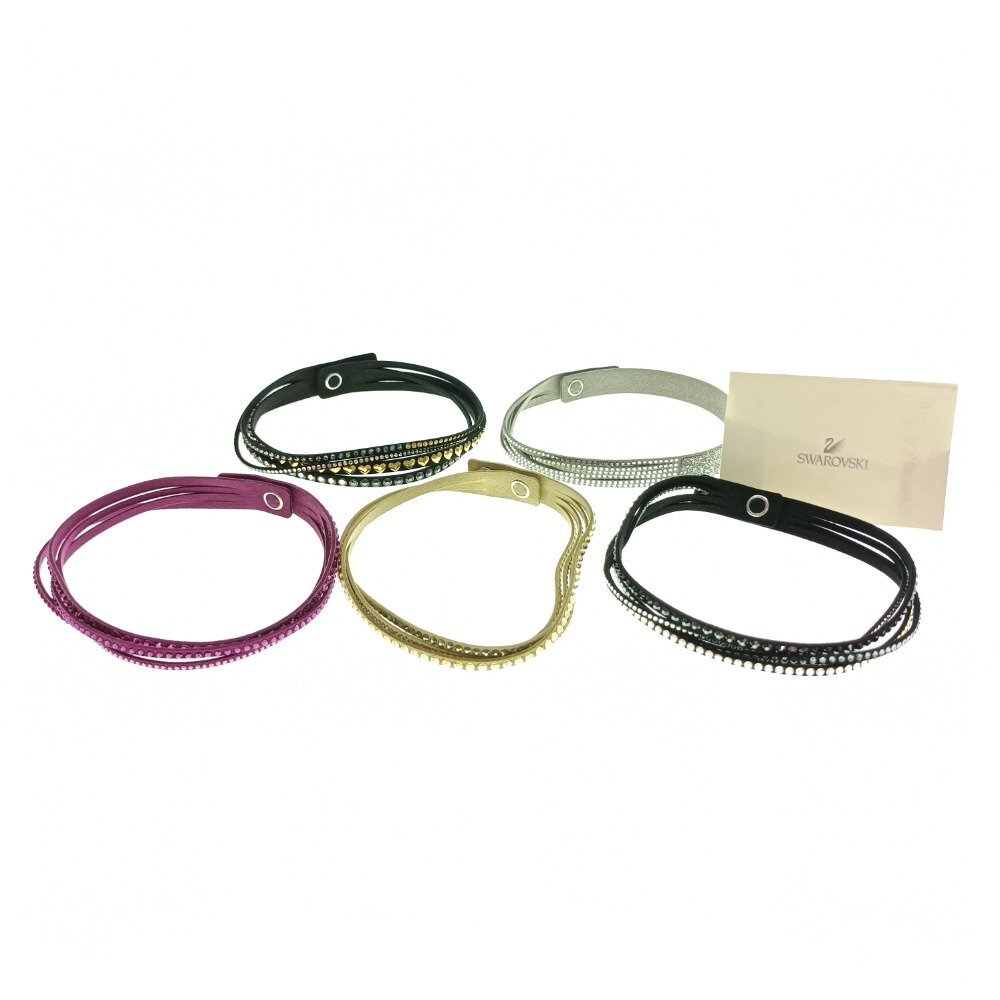 | SWAROVSKI スワロフスキー 5点セット ラインストーン レザー ブレスレット 黒 白 クリーム ピンク アクセサリー まとめ売り 中古 |