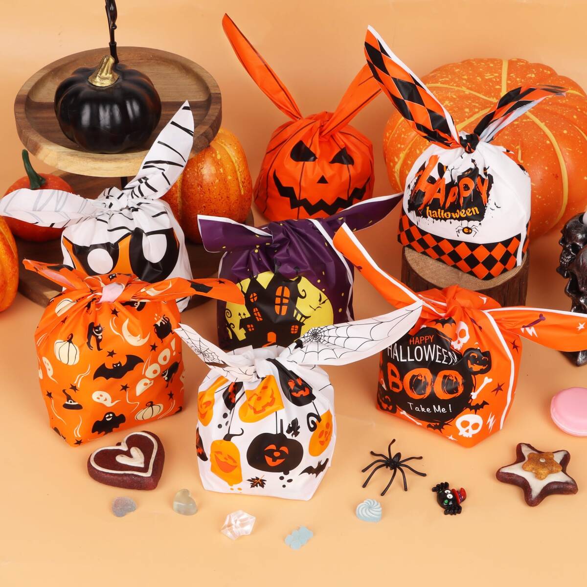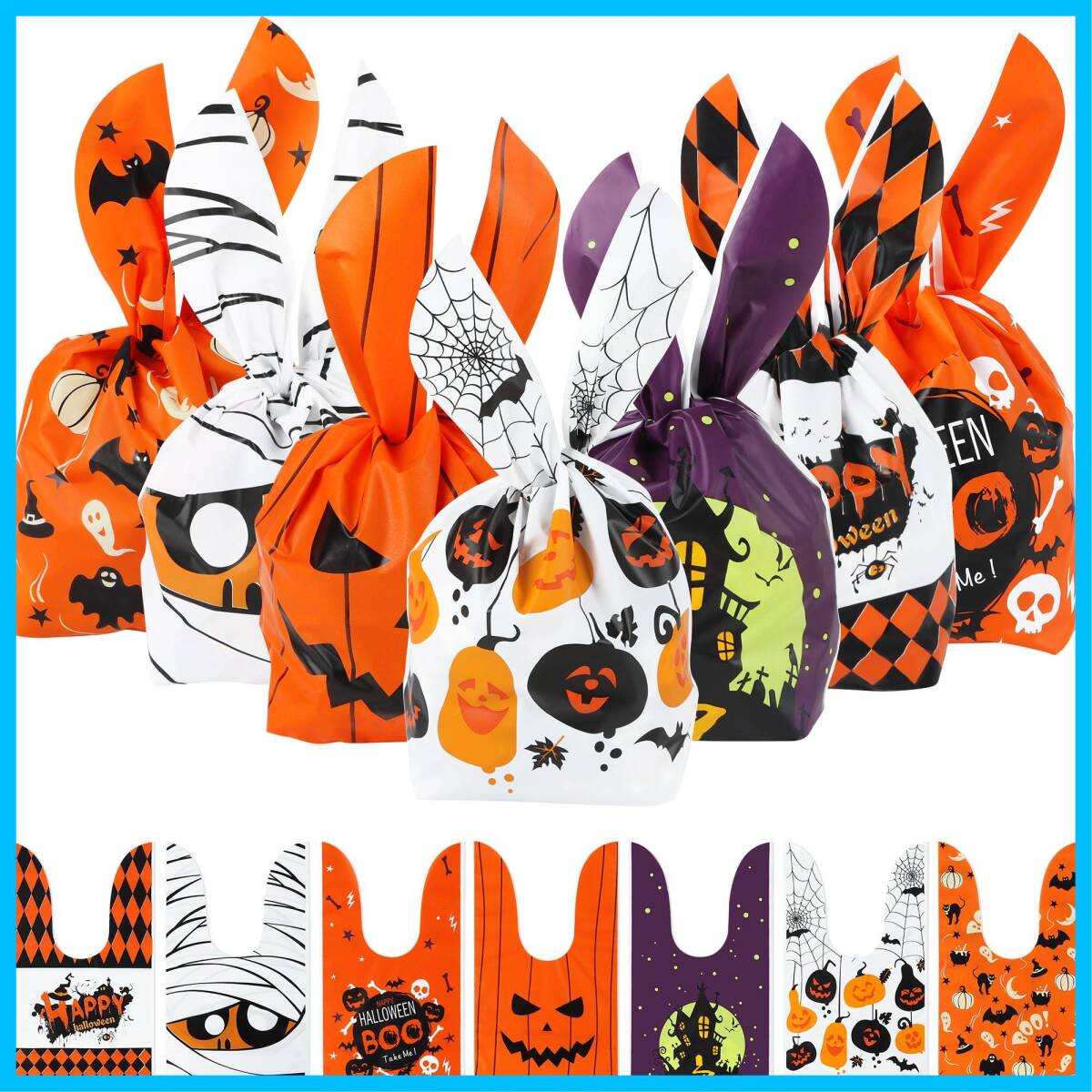 DERAYEE ハロウィン ギフトバッグ 70枚入り うさぎ耳 バッグ プレゼント 贈り物 小分け ラッピング ギフトバッグ 幽霊 カボチャ モンスター 黒猫 ハロウィーン柄 (70)