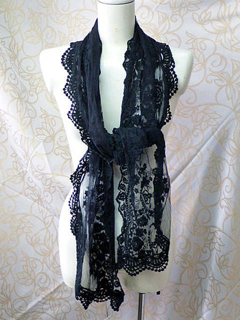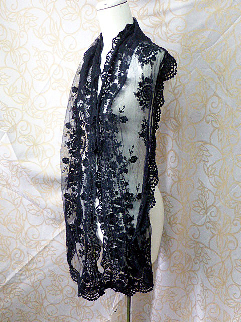 ahno36 VICKY  ブラック チュールレース ストール・251019