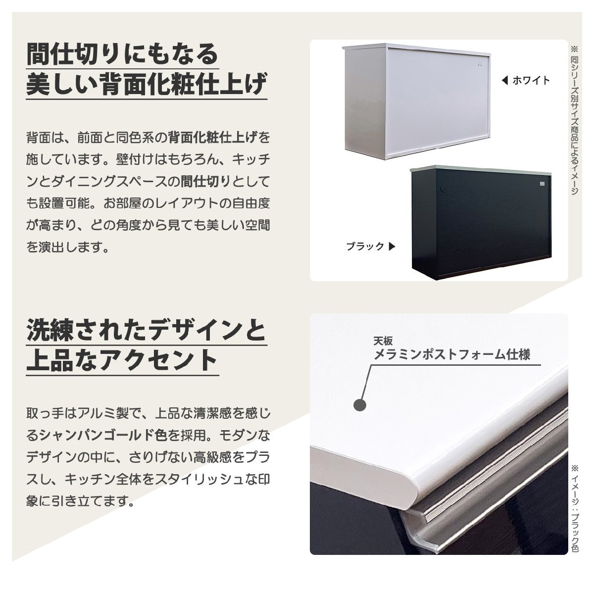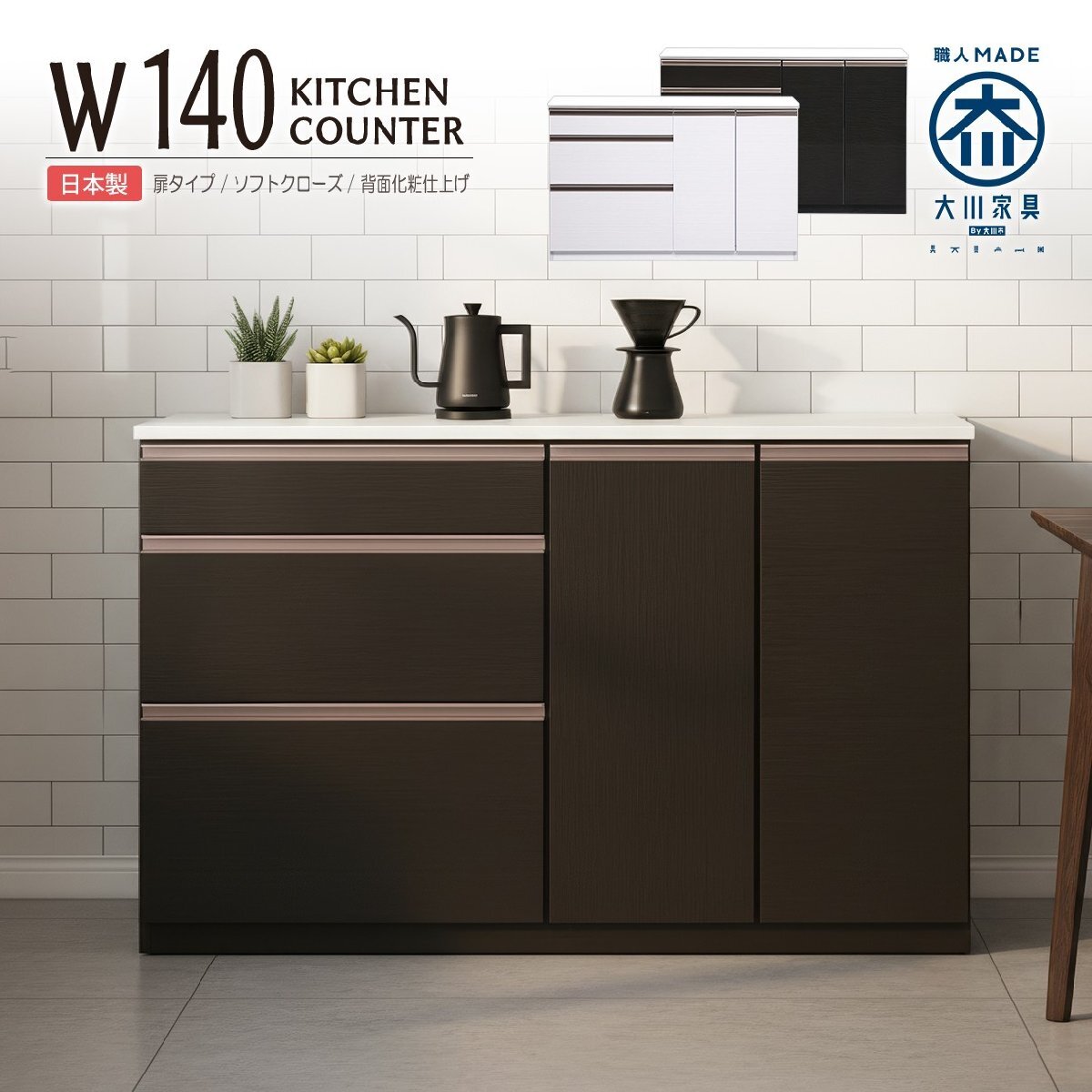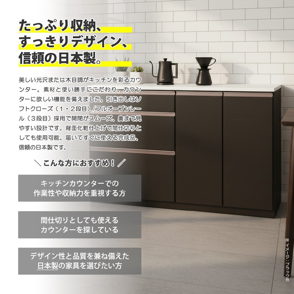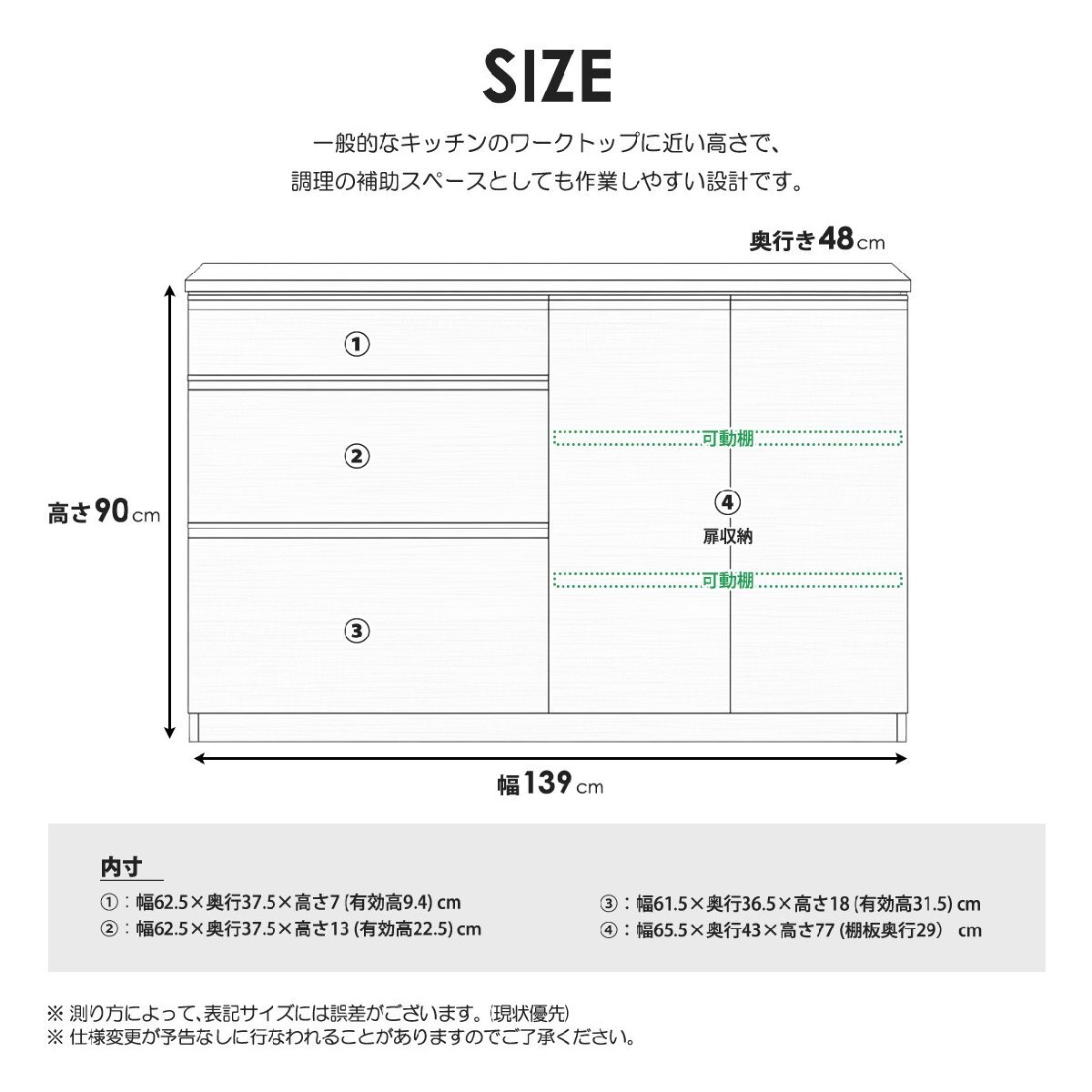 キッチンカウンター 完成品 日本製 幅140cm 高さ90cm 引き出し 扉付き ソフトクローズ ホワイト