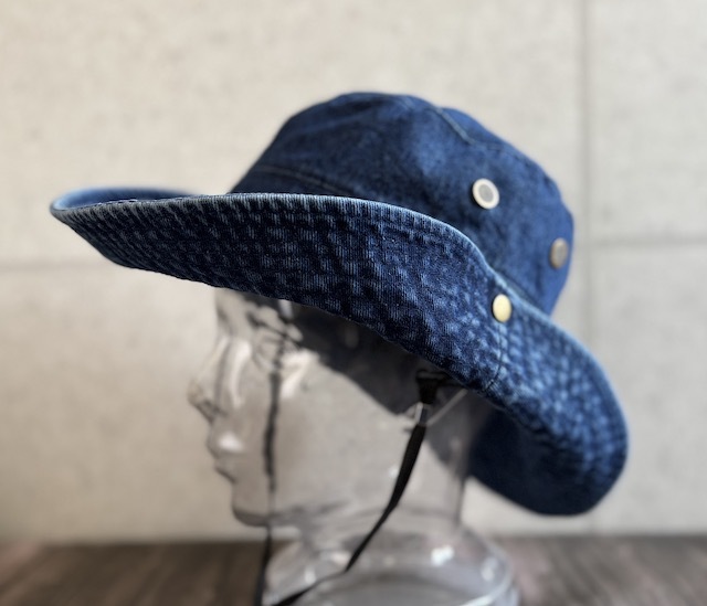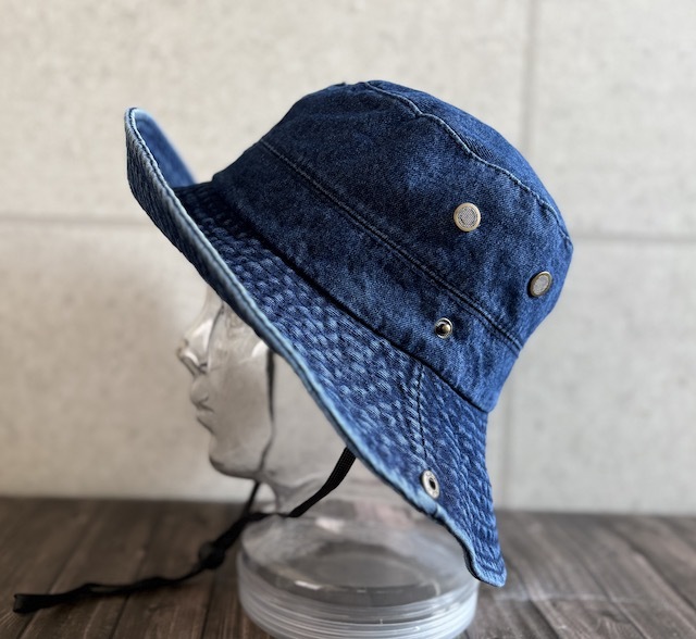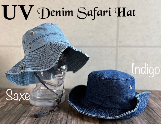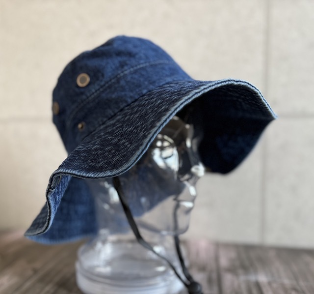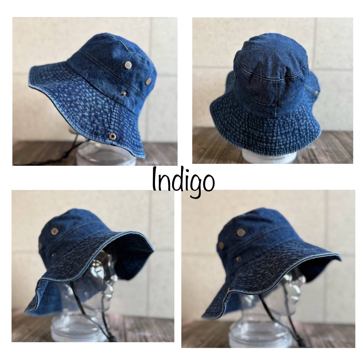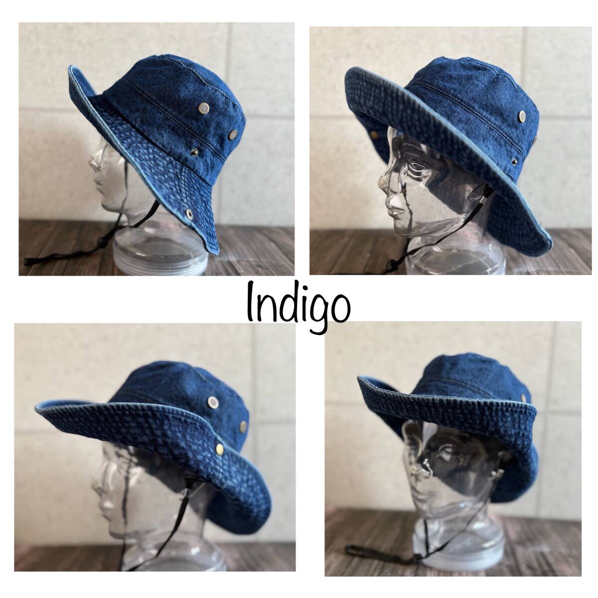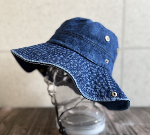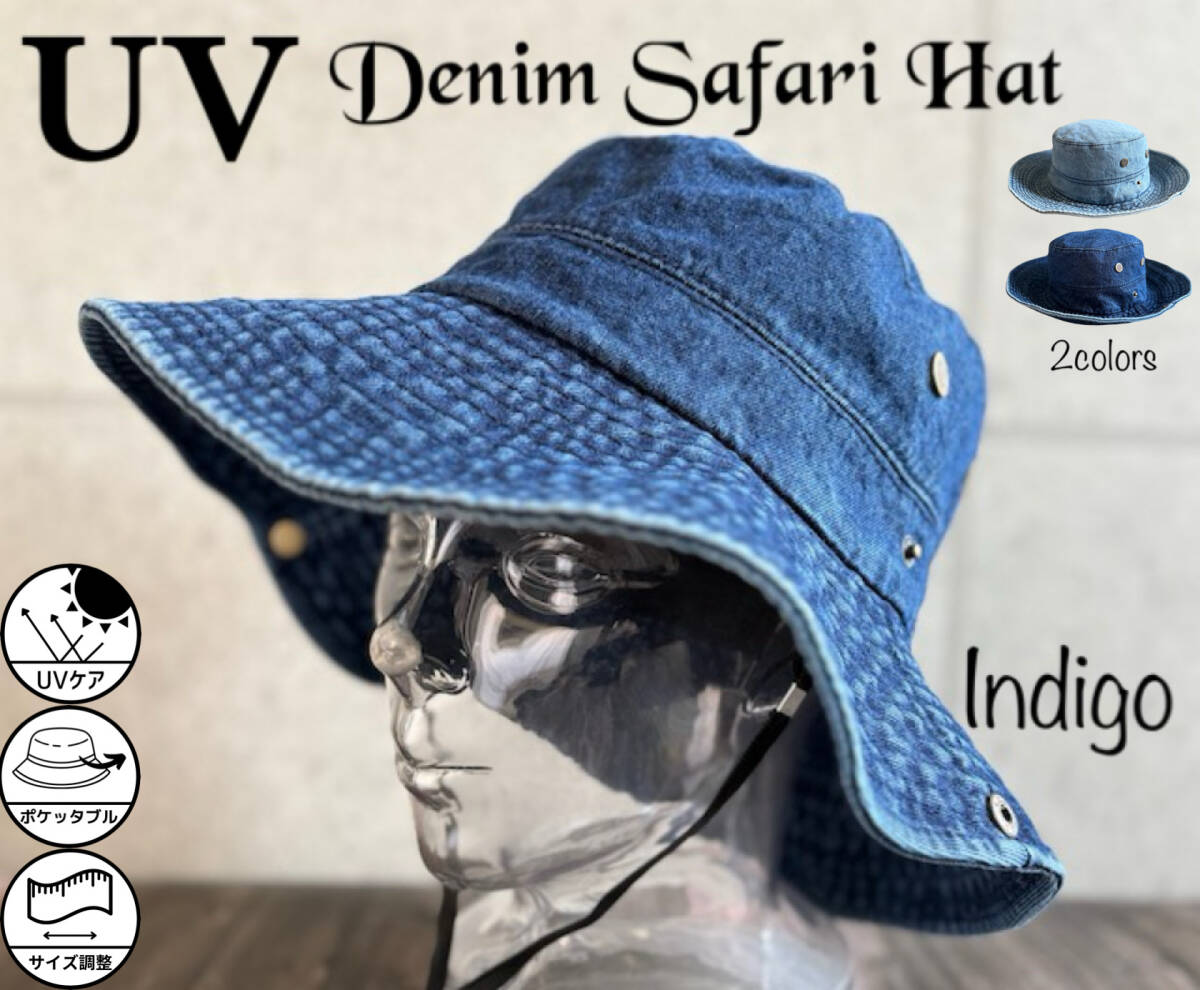 帽子 デニム サファリ ハット ウォッシュ つば広 ダメージ加工 アウトドア メンズ レディース バケット 日よけ 紫外線対策 インディゴ