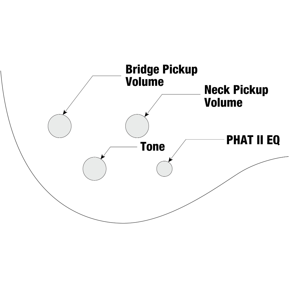 GSR180同様フロントとリア・ピックアップそれぞれの音量と、トーンを調整するシンプルなコントロールに加え、サウンドをよりダイナミックに味付けするPHAT II EQを装備しています。(006Pアルカリ乾電池駆動)