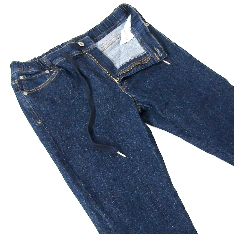 軽やかなデニム素材に加え、ウエストはゴム+ドローコードでストレスフリーな履き心地。