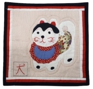 犬張子をモチーフにした和風のハンドメイドタペストリーです。