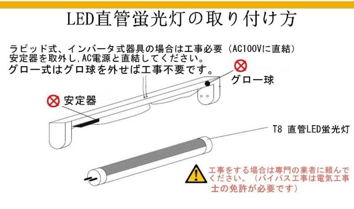 ●※グロー球と安定器を取り外さずに使用すると、点滅する可能性があります。