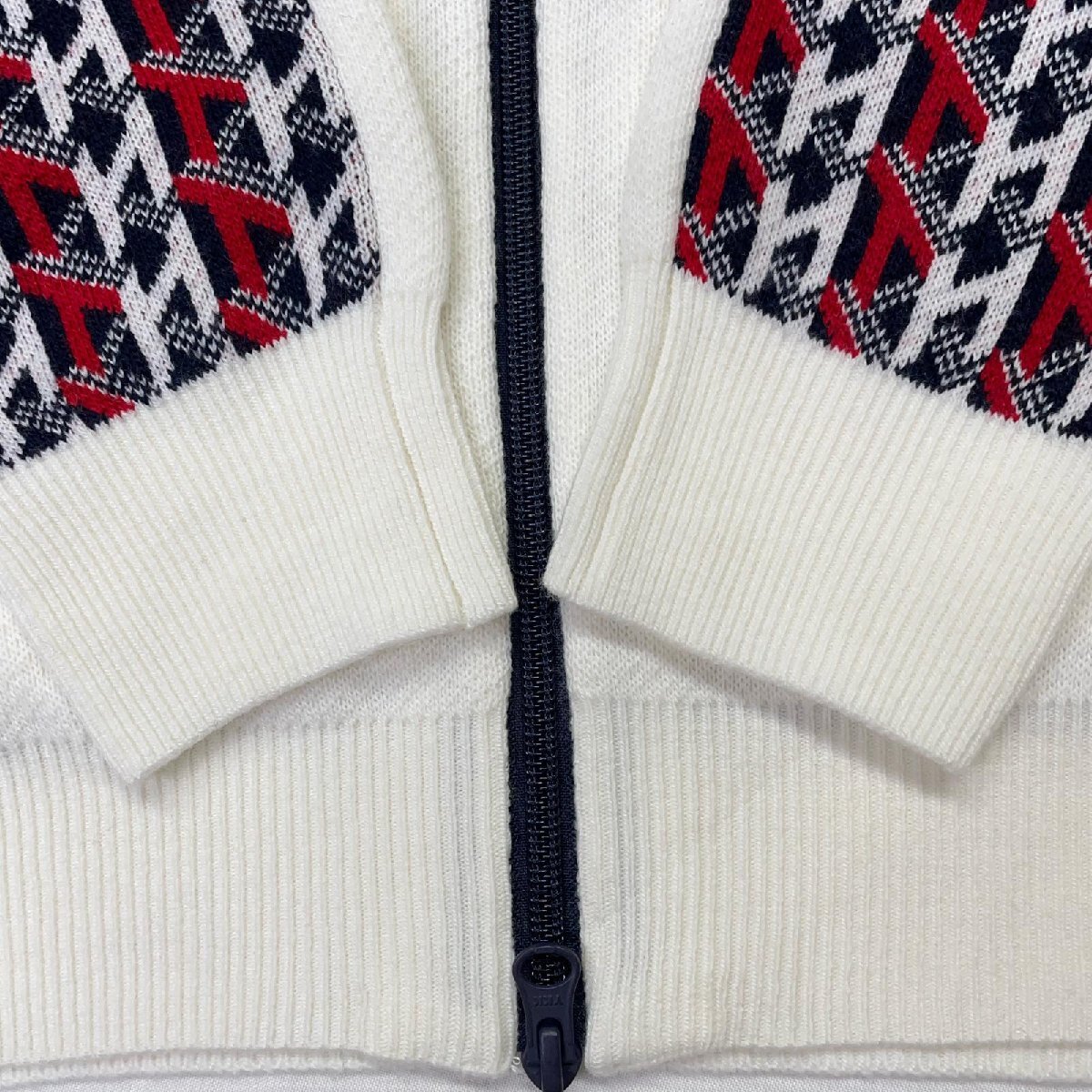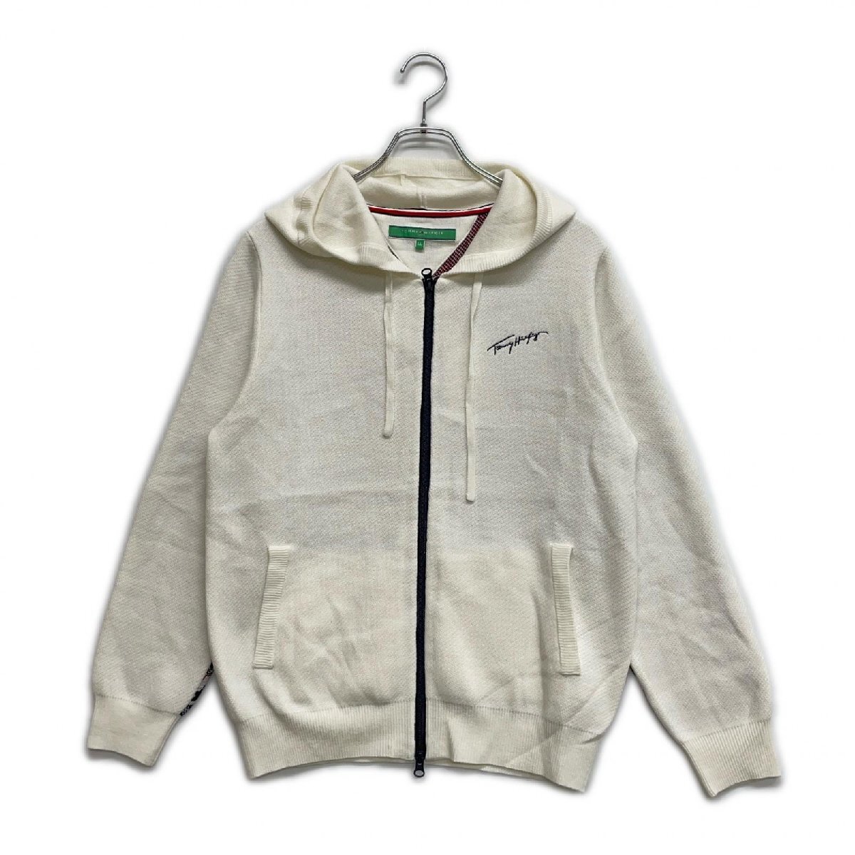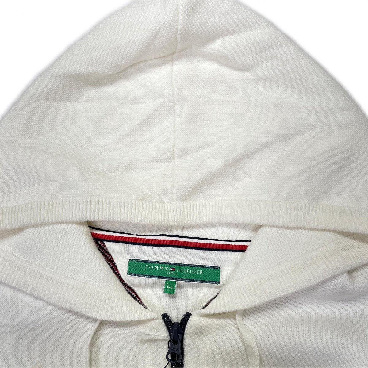 coco 未使用品 トミーヒルフィガーゴルフ レディース ニットアウター LL 白×赤×紺 パーカー レターパックプラス発送可 119987