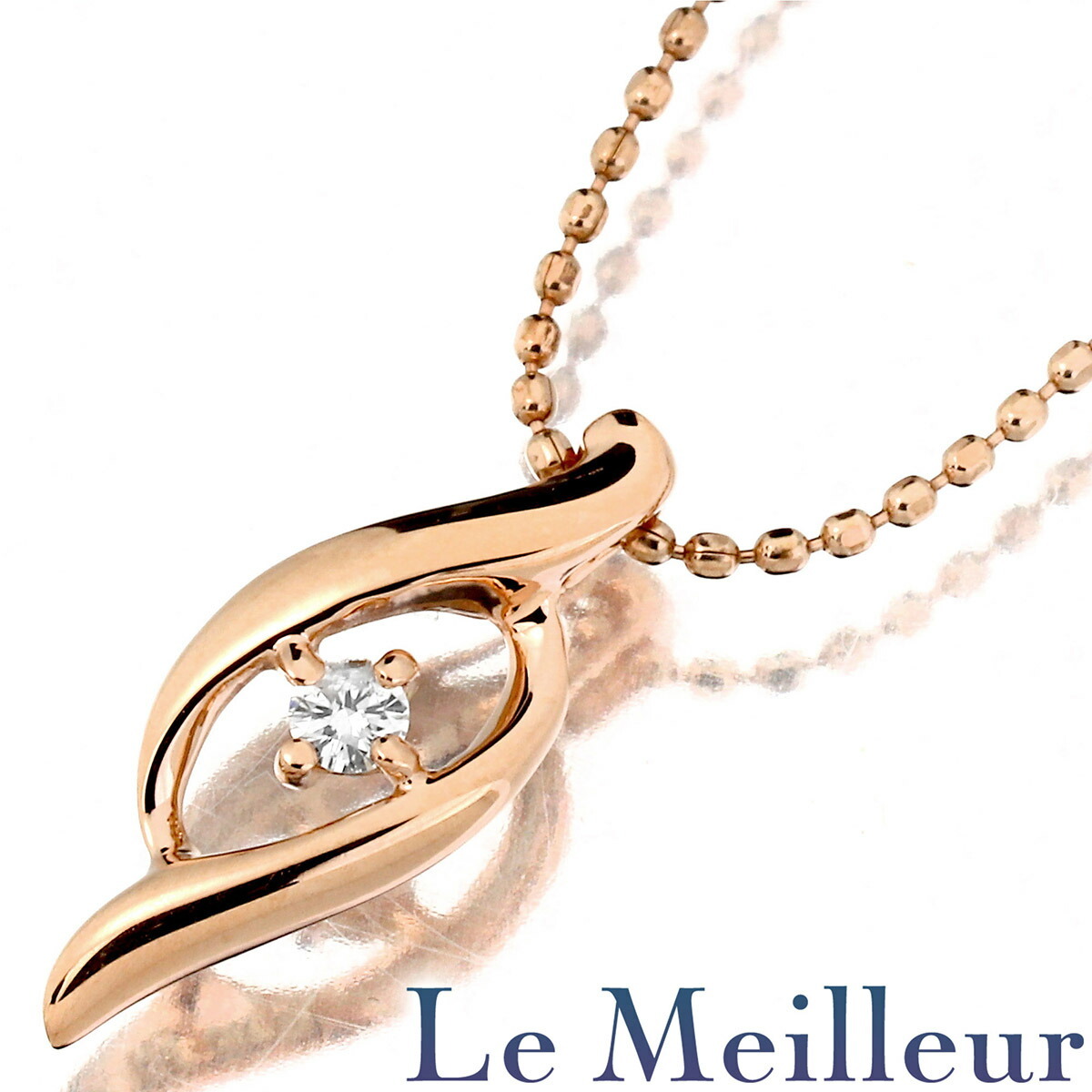 曲線 抜け感 透け感 つや フェミニン エレガント チェーン取り外し不可 肌馴染み 4月 誕生石 ボールチェーン 引き輪 アジャスター有 ダイア 10金 PG 20代 30代 40代 50代 60代 70代 USED ユーズド 中古 リユース ネックレス LEOT1849