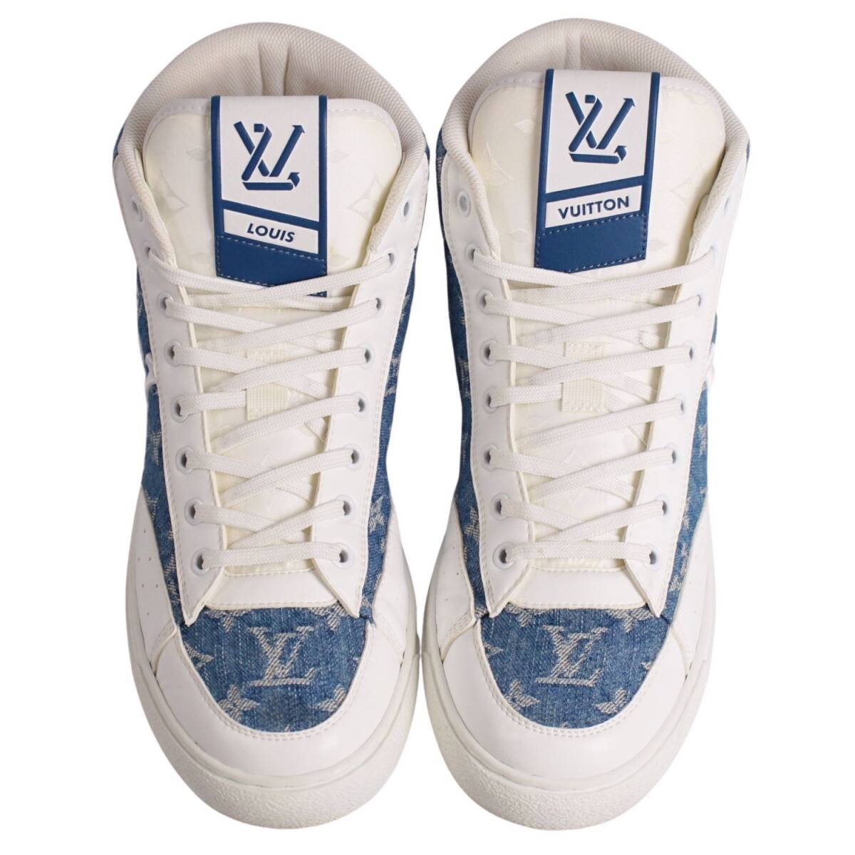 | 美品 ルイヴィトン LOUIS VUITTON スニーカー チャーリーライン デニム モノグラム レザー 靴 メンズ 7.5(26cm) ブルー |