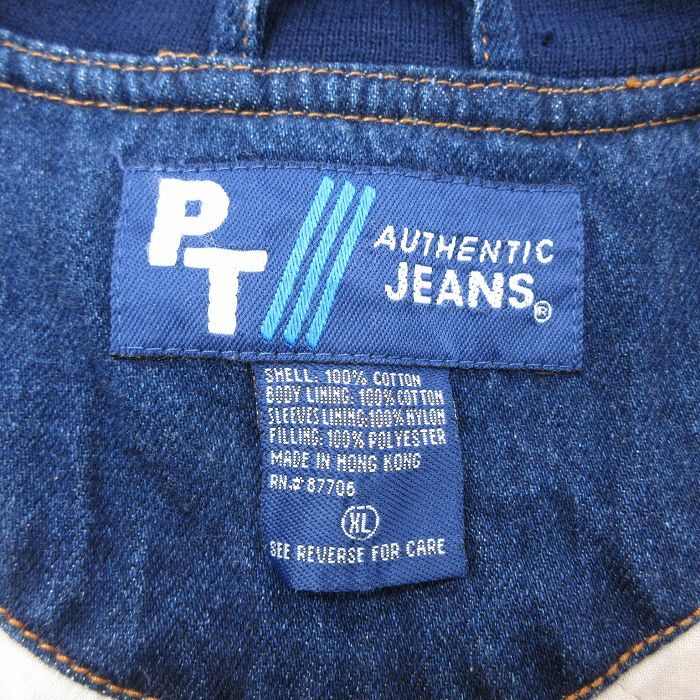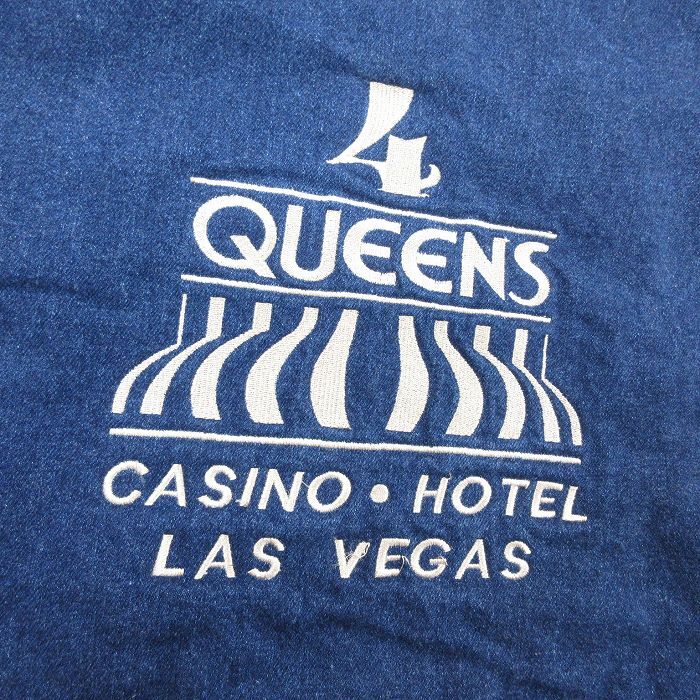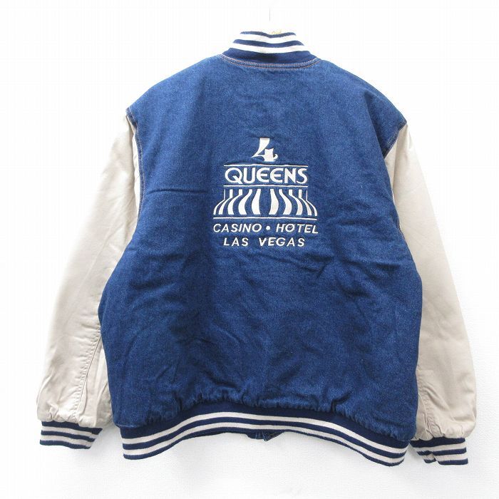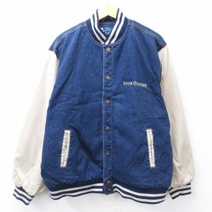 【商品名】 XL★古着 長袖 デニム ジャケット スタジャン メンズ QUEENS 刺繍 大きいサイズ コットン 紺他 内側キルティング