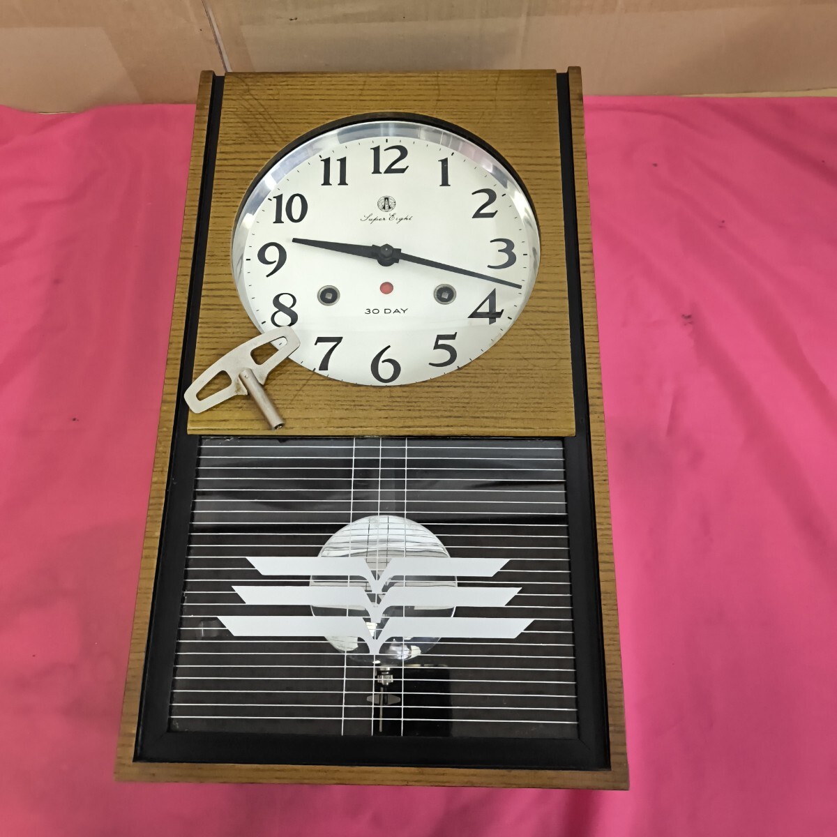 ◎【愛知時計 振り子時計】年代物 当時物 ジャンク品 インテリア 昭和レトロ ボンボン時計 ゼンマイ式 鍵あり 30DAY パーツ取り 276-74