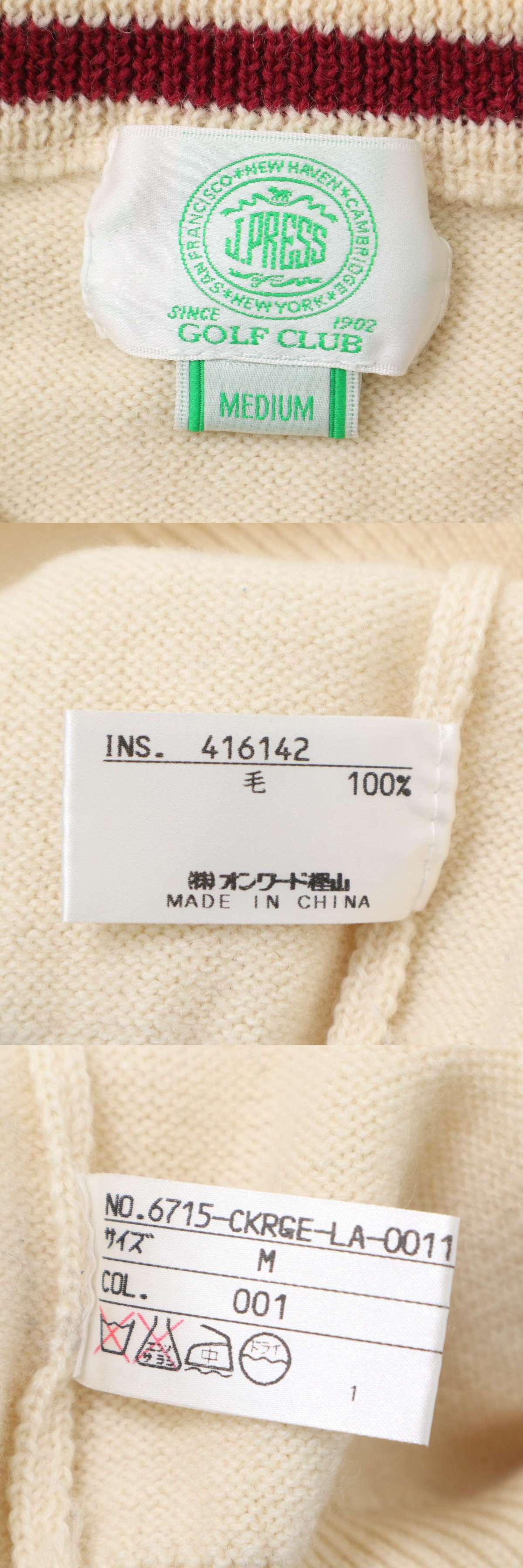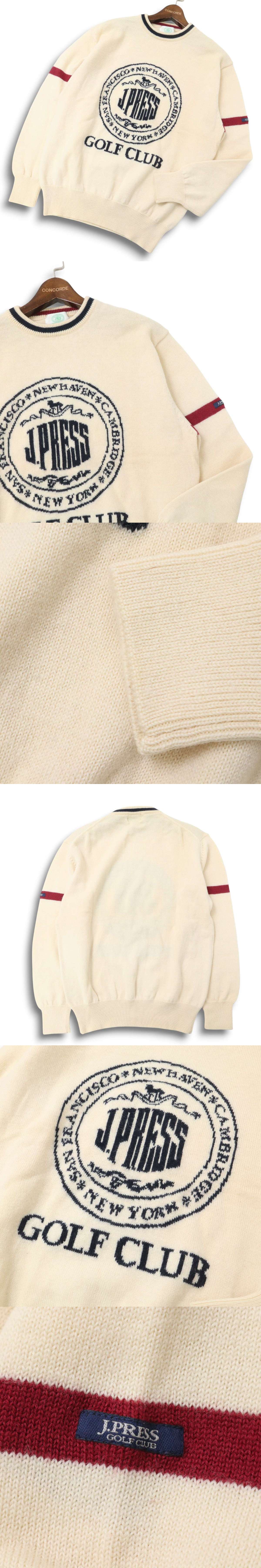 J.PRESS ジェイプレス GOLF CLUB 秋冬 ウール100%★ ビッグ ロゴ ニット セーター Sz.M メンズ