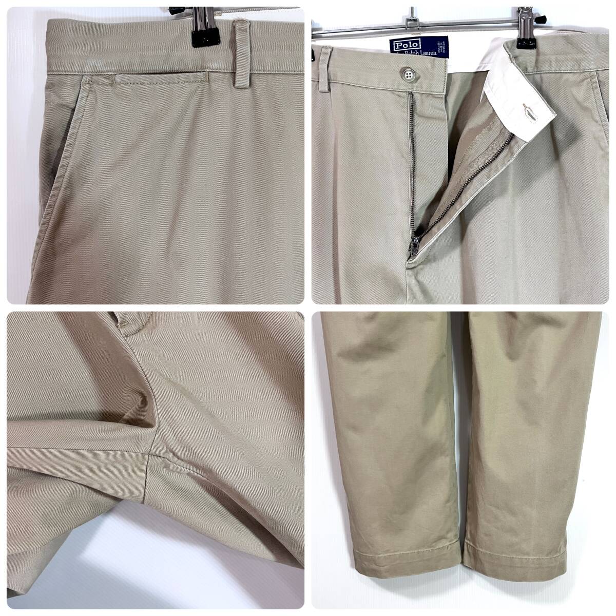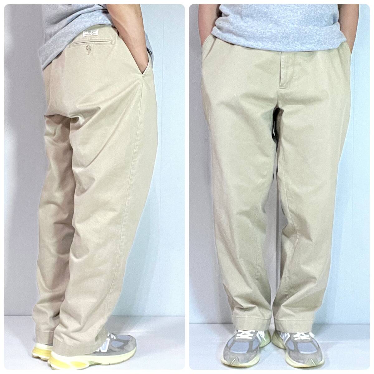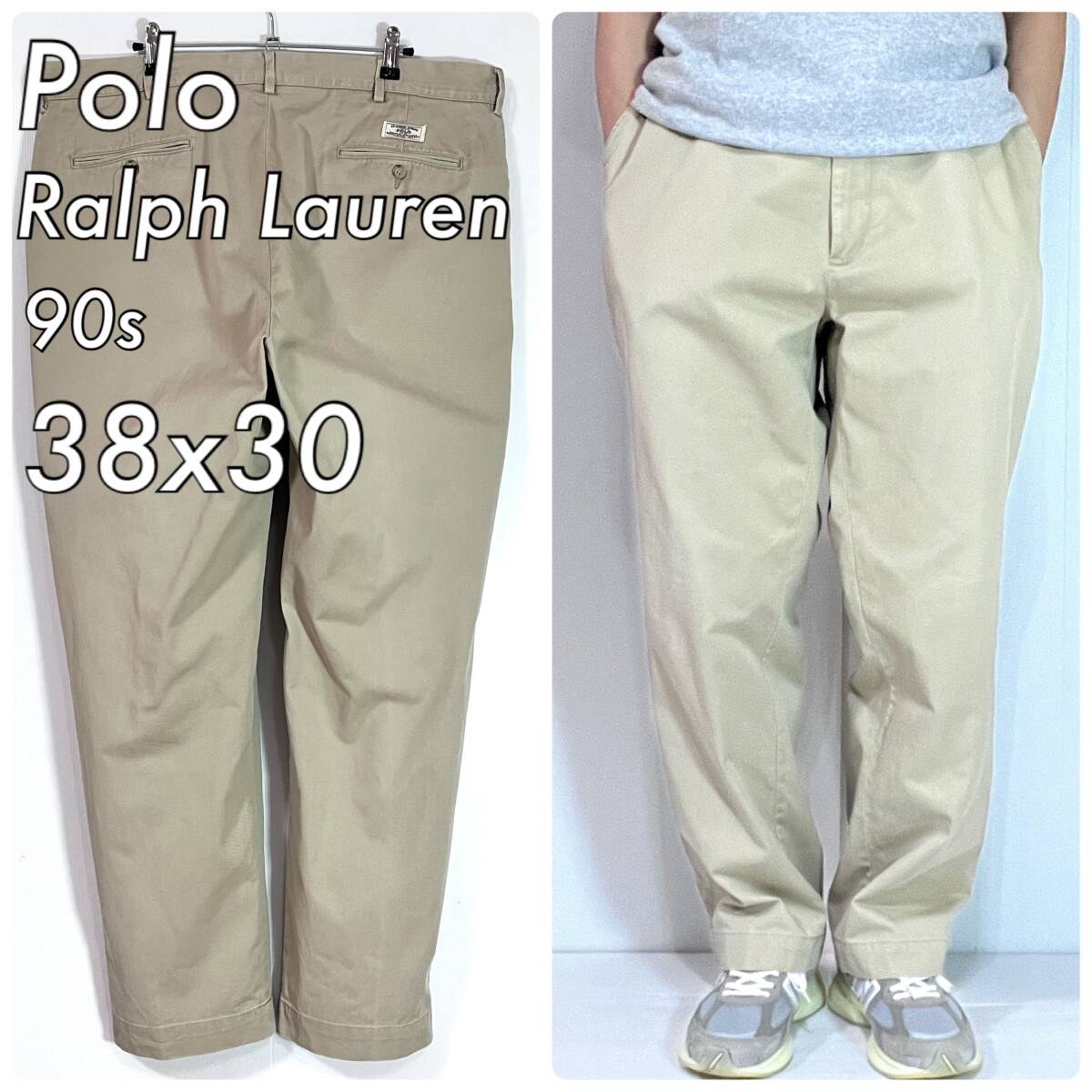 90s Polo Ralph Lauren ポロラルフローレン W38L30 コットン 極太 ノータック チノ ベージュ チノパン ワイドパンツ トラウザーズp25103351