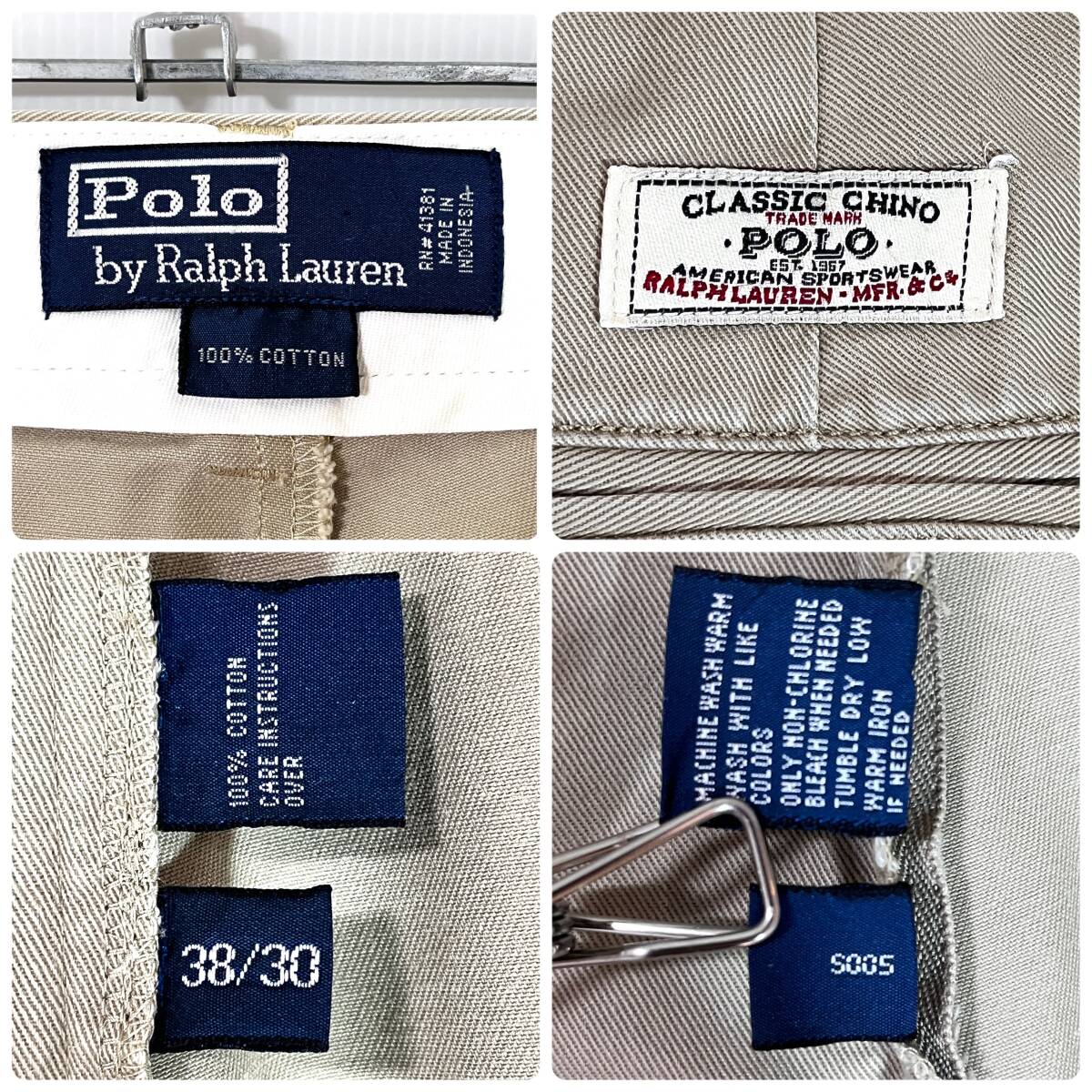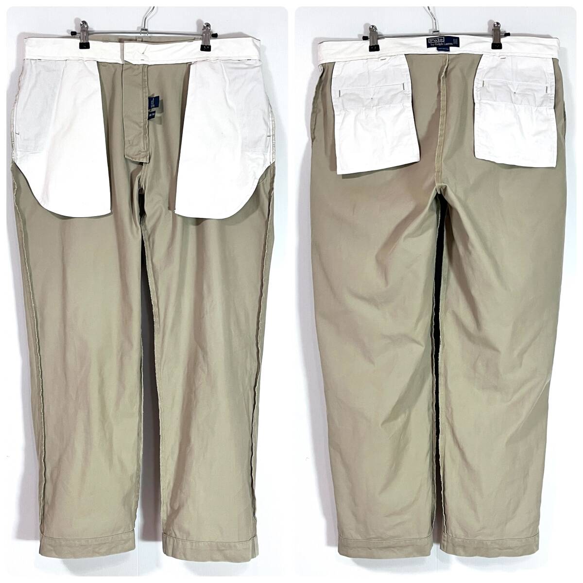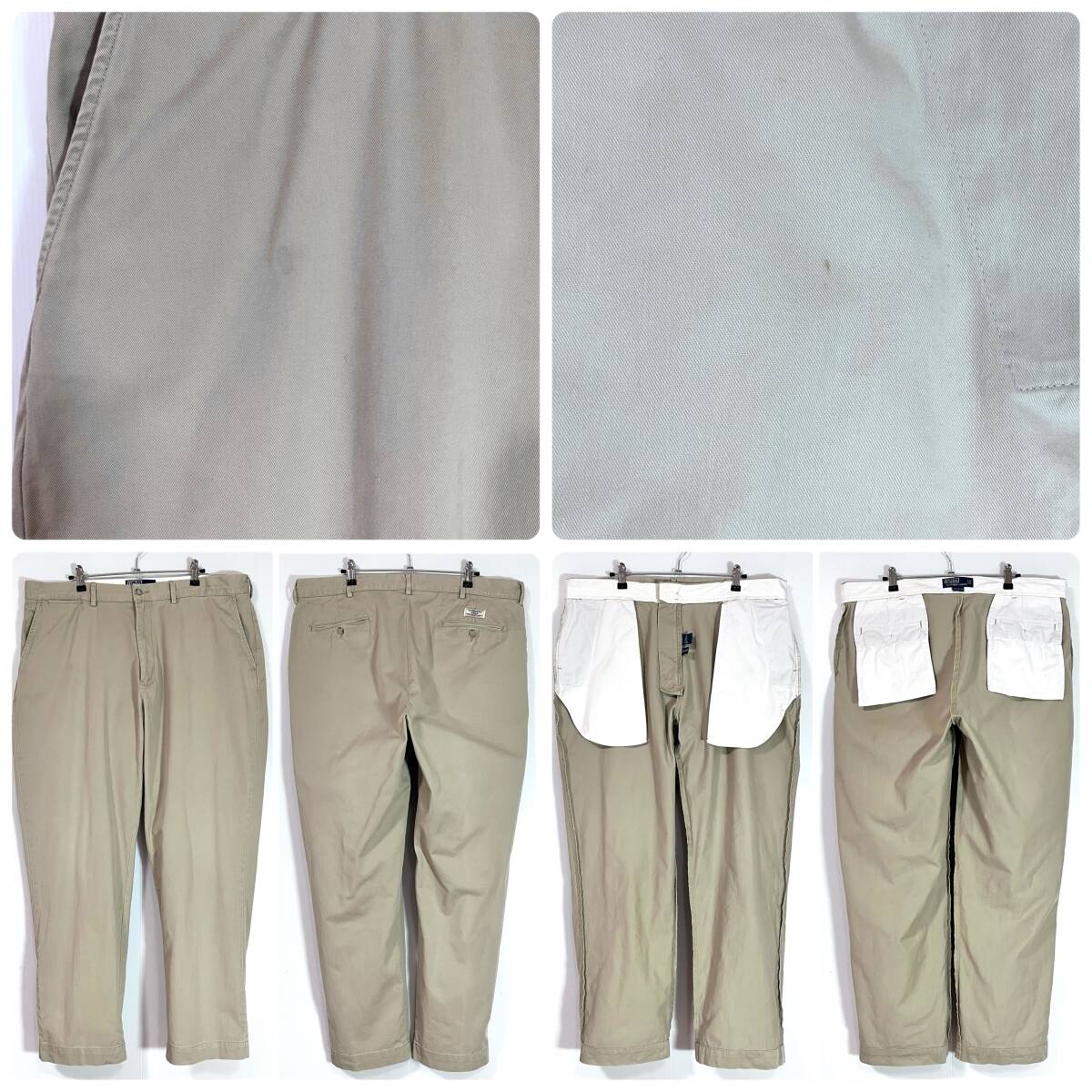 90s Polo Ralph Lauren ポロラルフローレン W38L30 コットン 極太 ノータック チノ ベージュ チノパン ワイドパンツ トラウザーズp25103351