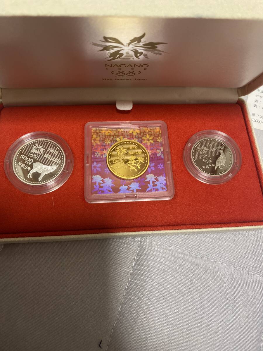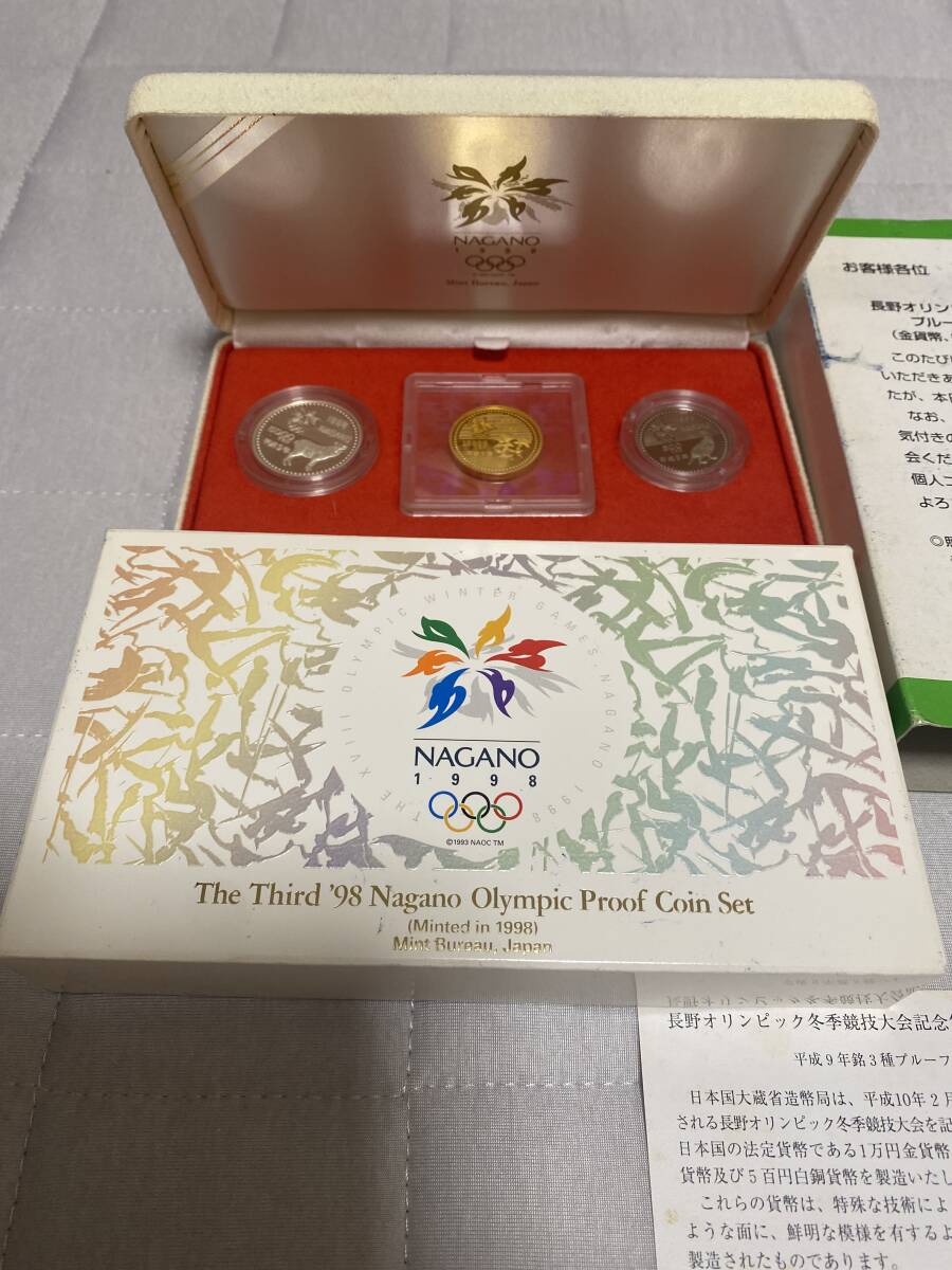 長野オリンピック冬季競技大会記念 プルーフ貨幣セット 1998 金貨幣、銀貨幣、白銅貨幣3点セットなります。