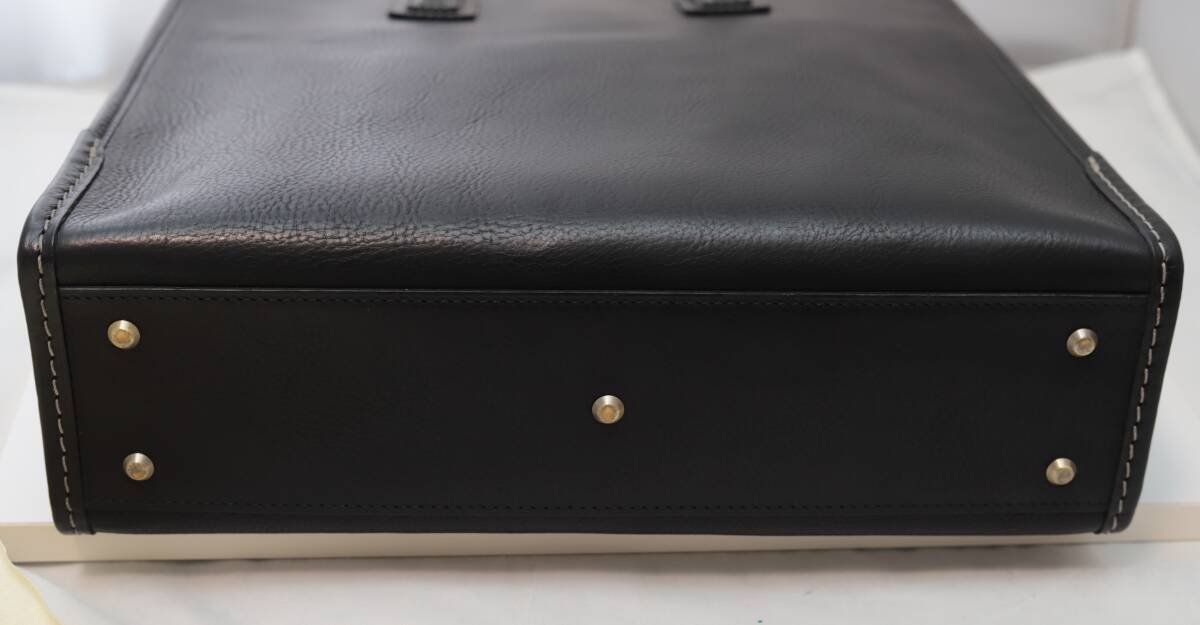 使用したのは数回のみで、革を傷つけないように大切に扱っておりました。素人目ですが、傷や擦れ等は見当たりません。もしあっても初期傷であると思われます。内部の布に少しだけ小さい汚れ?があります。(多分書類から落ちてしまった。画像確認ください。)