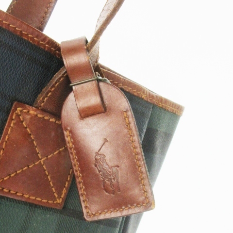 ポロ ラルフローレン POLO RALPH LAUREN トートバッグ PVC レザー 革 ロゴ ブラックウォッチ 緑 グリーン /CK8 ■GY18 レディース