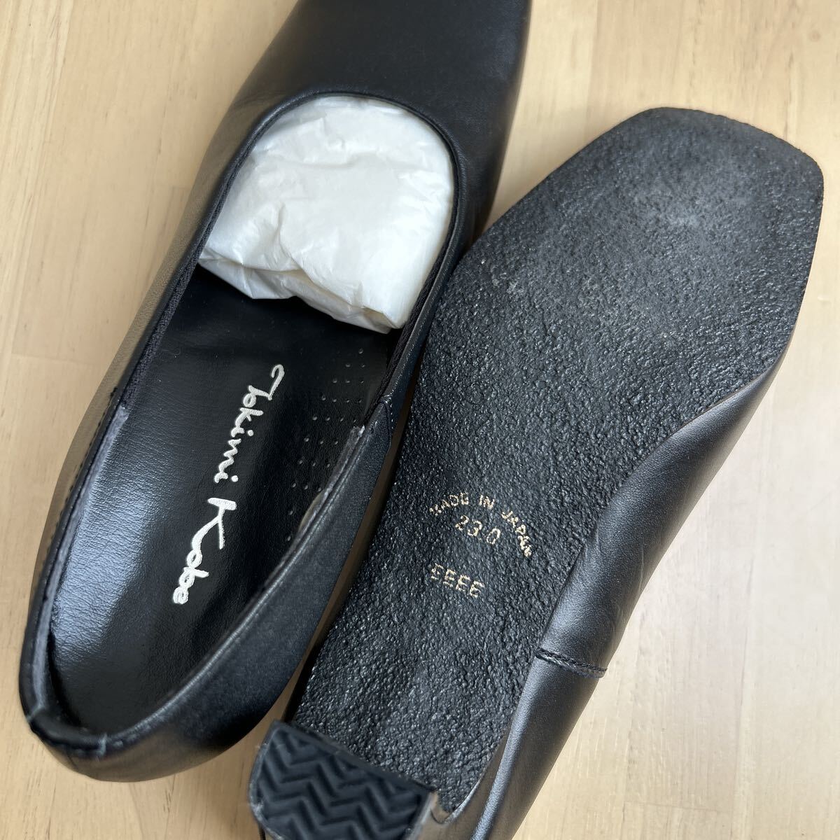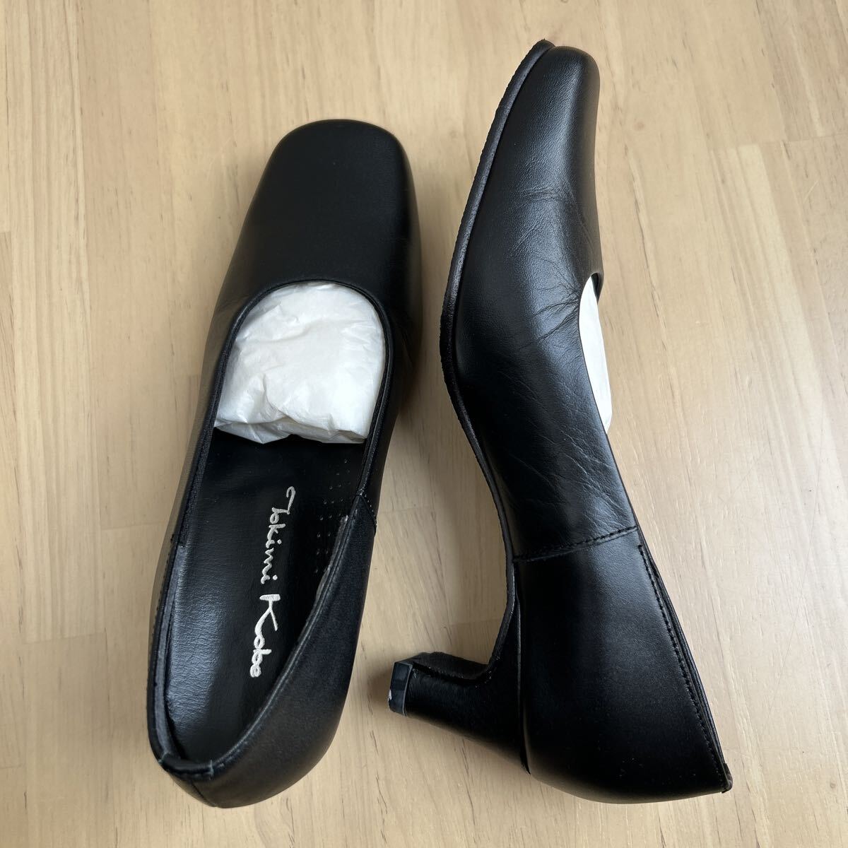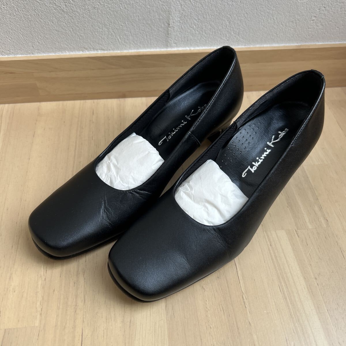 サイズ23 レディース トキミ神戸 パンプス ブラック 黒 レザー 靴 ローヒール トップ四角