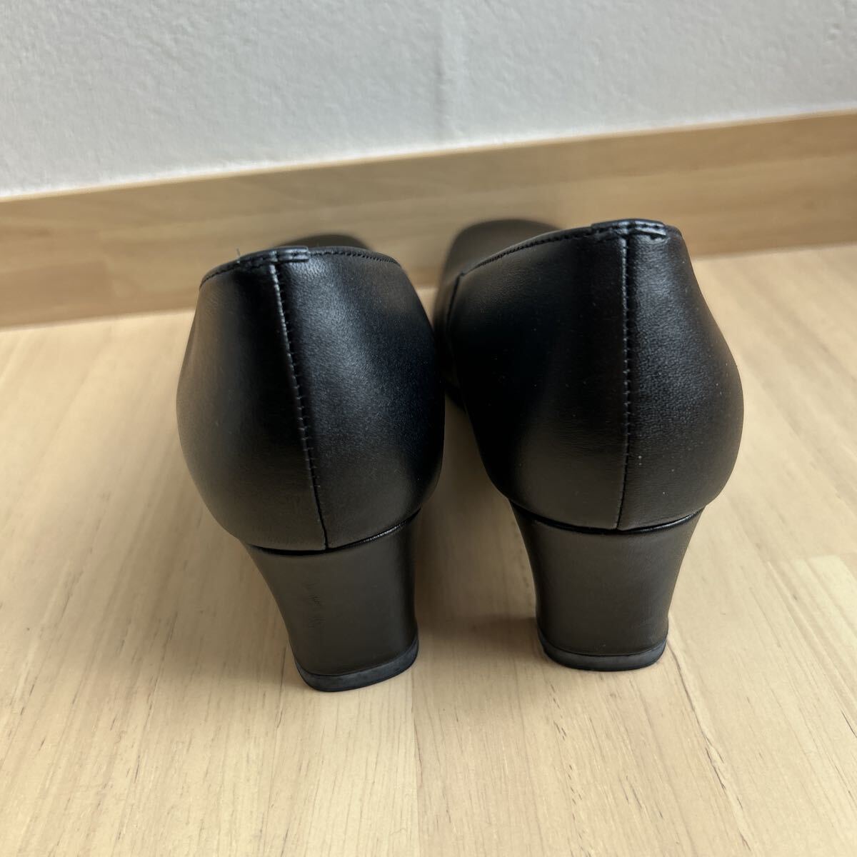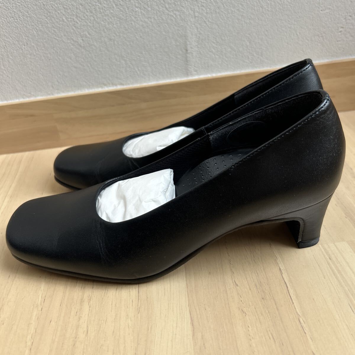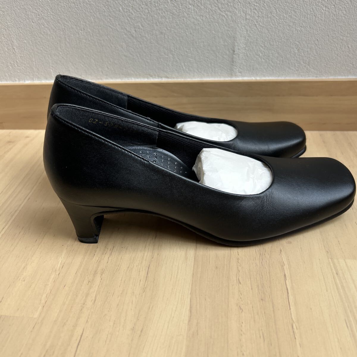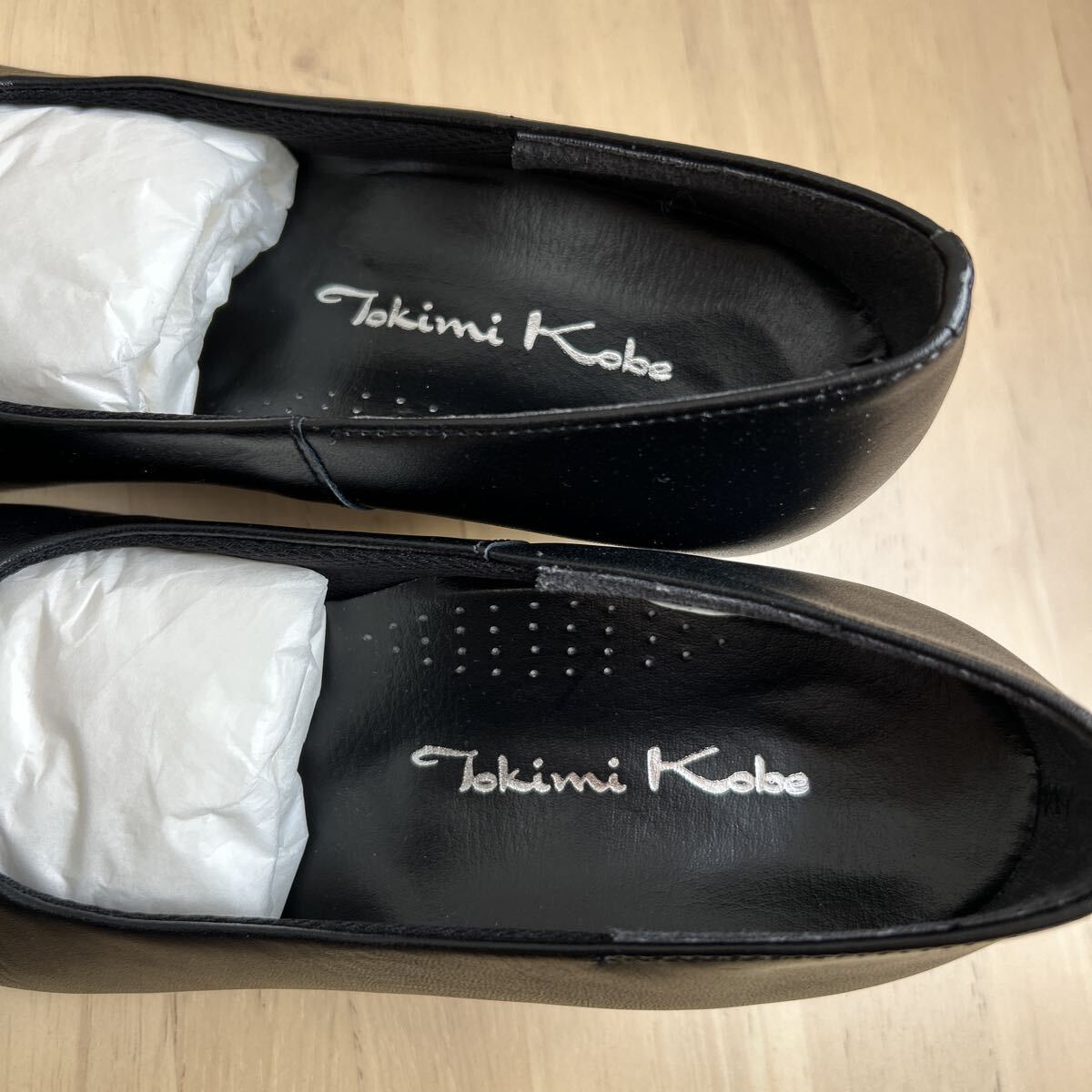 サイズ23 レディース トキミ神戸 パンプス ブラック 黒 レザー 靴 ローヒール トップ四角