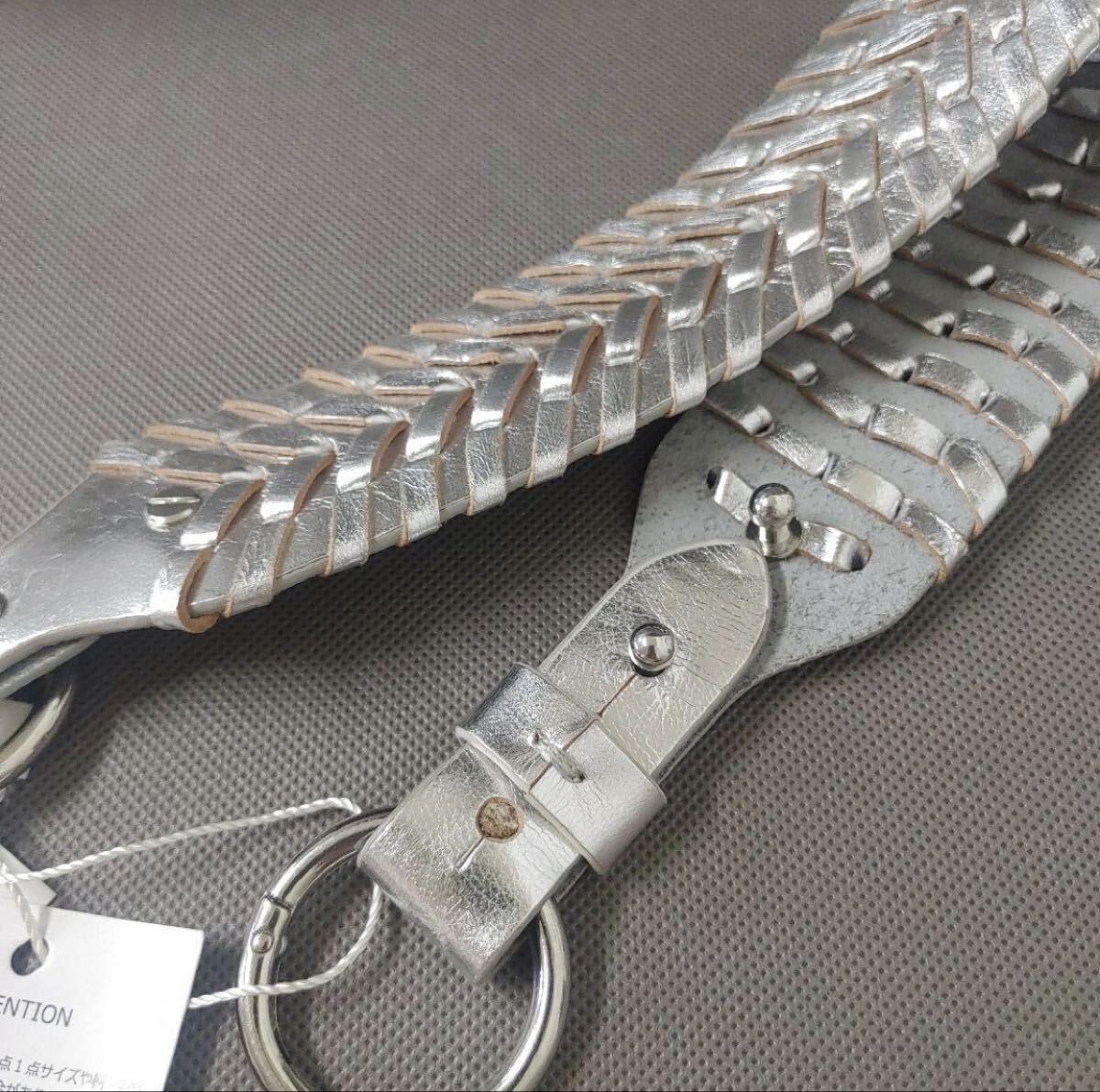 一枚革で仕立てたストラップにはない、独特の編地が特徴的。