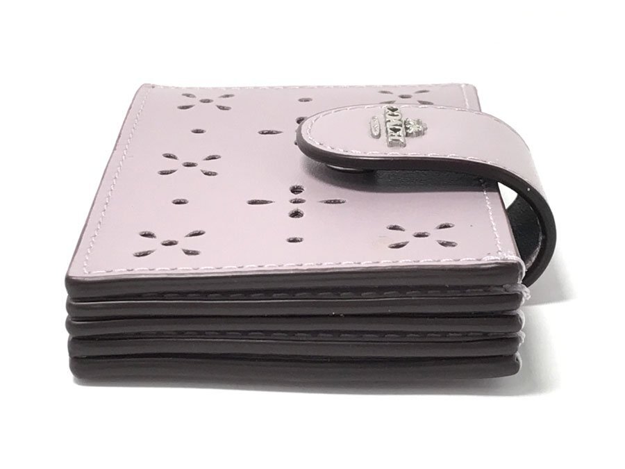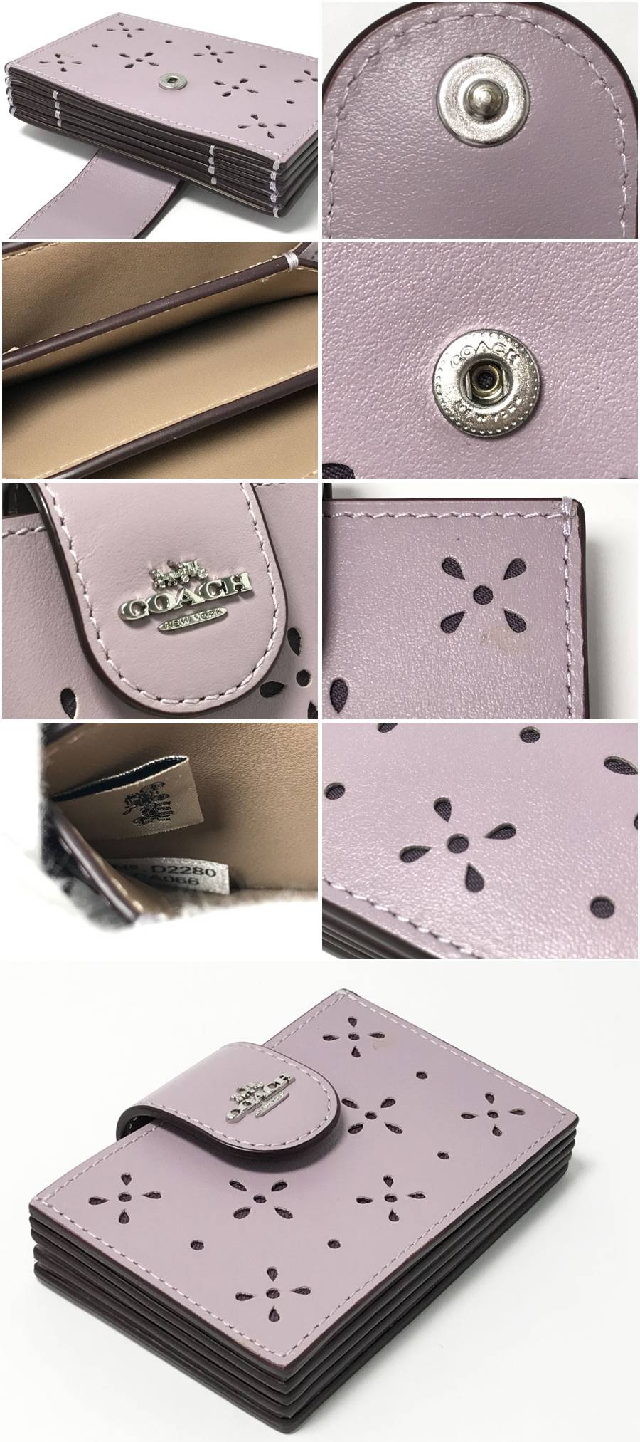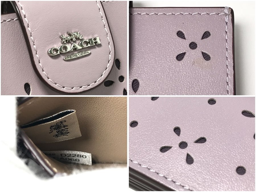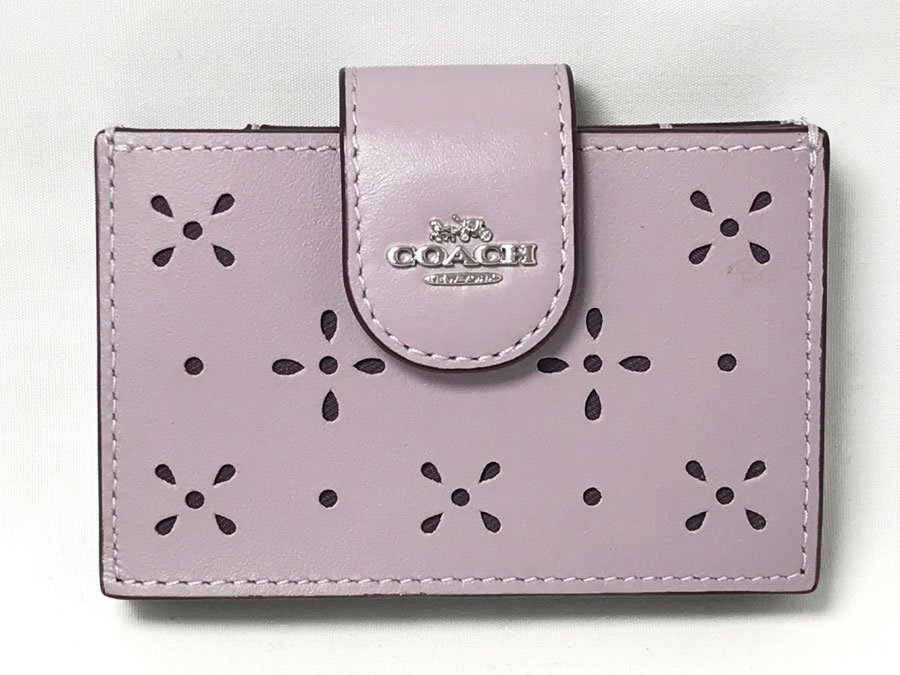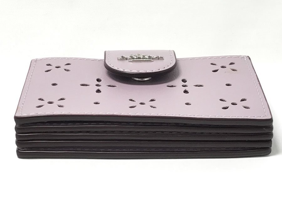 ◆美品!COACH コーチ アコーディオン カードケース リファインドカーフレザーCA006 フラワーパンチング 蛇腹式 ラベンダー パープル系