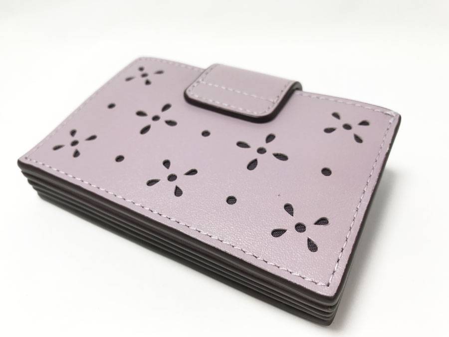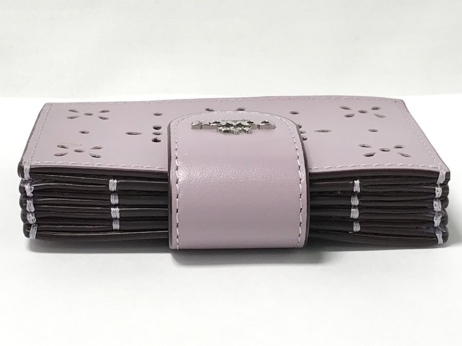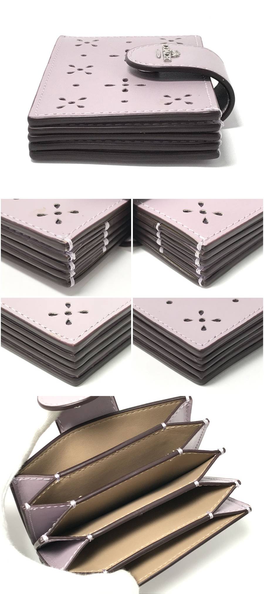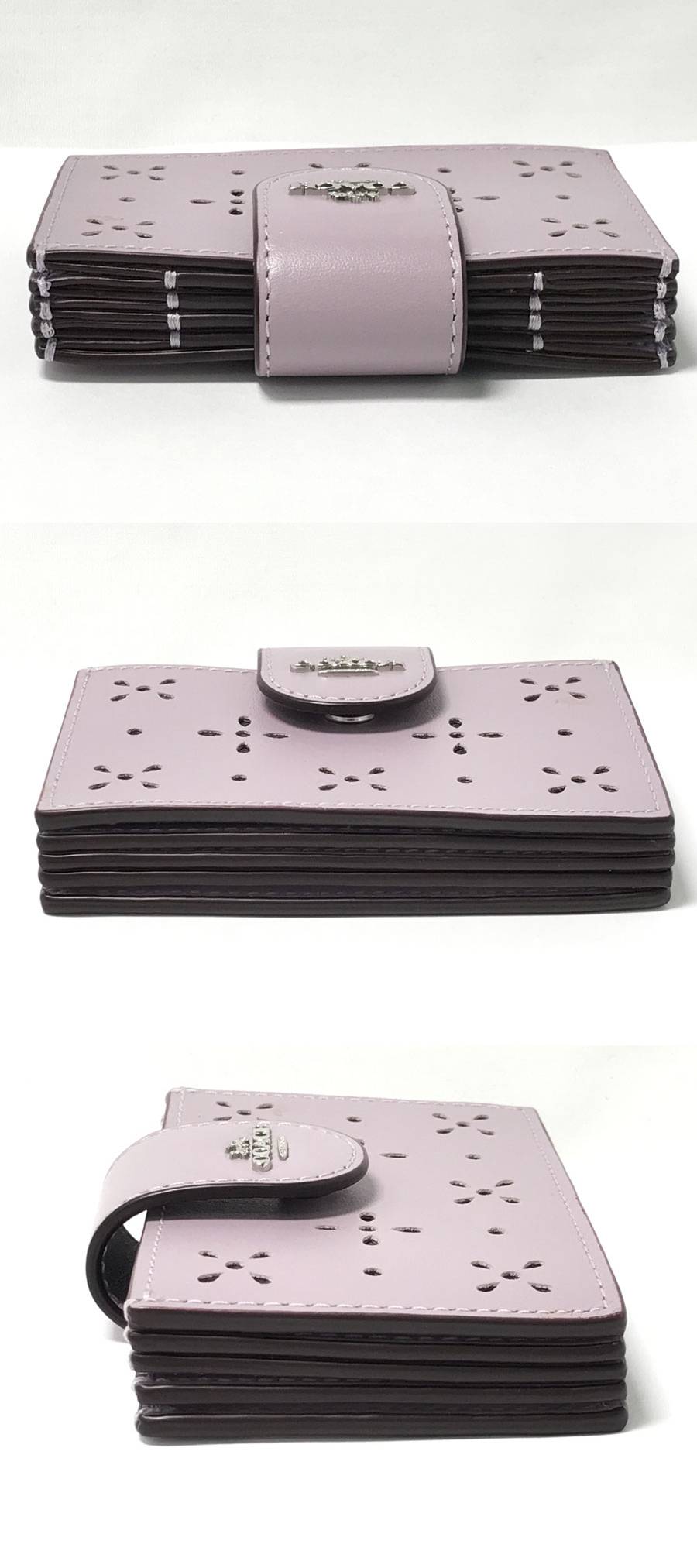 ◆美品!COACH コーチ アコーディオン カードケース リファインドカーフレザーCA006 フラワーパンチング 蛇腹式 ラベンダー パープル系