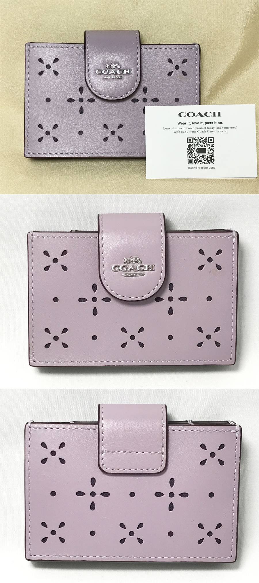 ●商品名 ◆美品!COACH コーチ アコーディオン カードケース リファインドカーフレザーCA006 フラワーパンチング 蛇腹式 ラベンダー パープル系