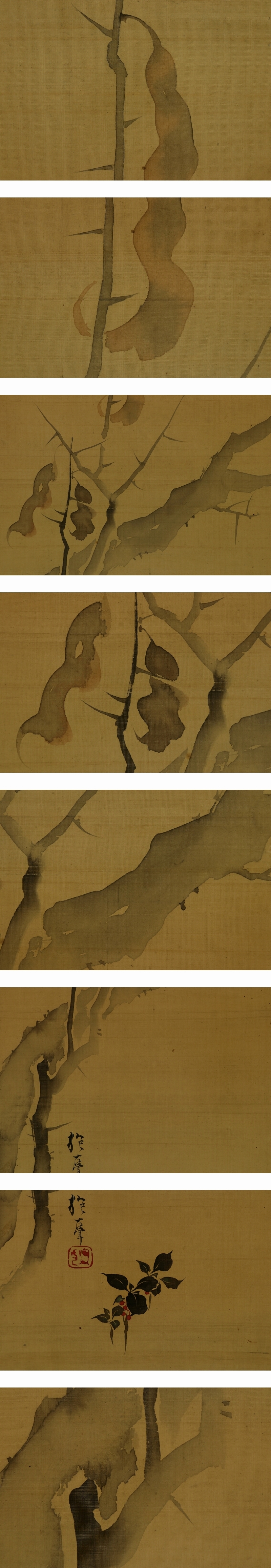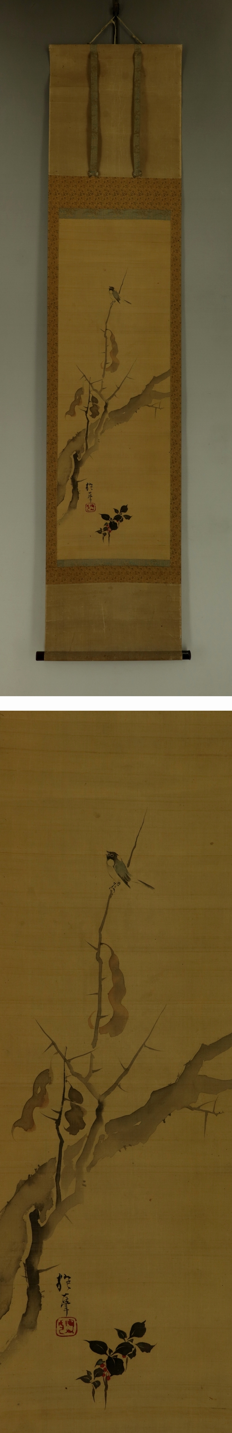 | №2406021【模写】酒井抱一【枯木小禽図】◆絹本◆合箱◆掛軸 | |