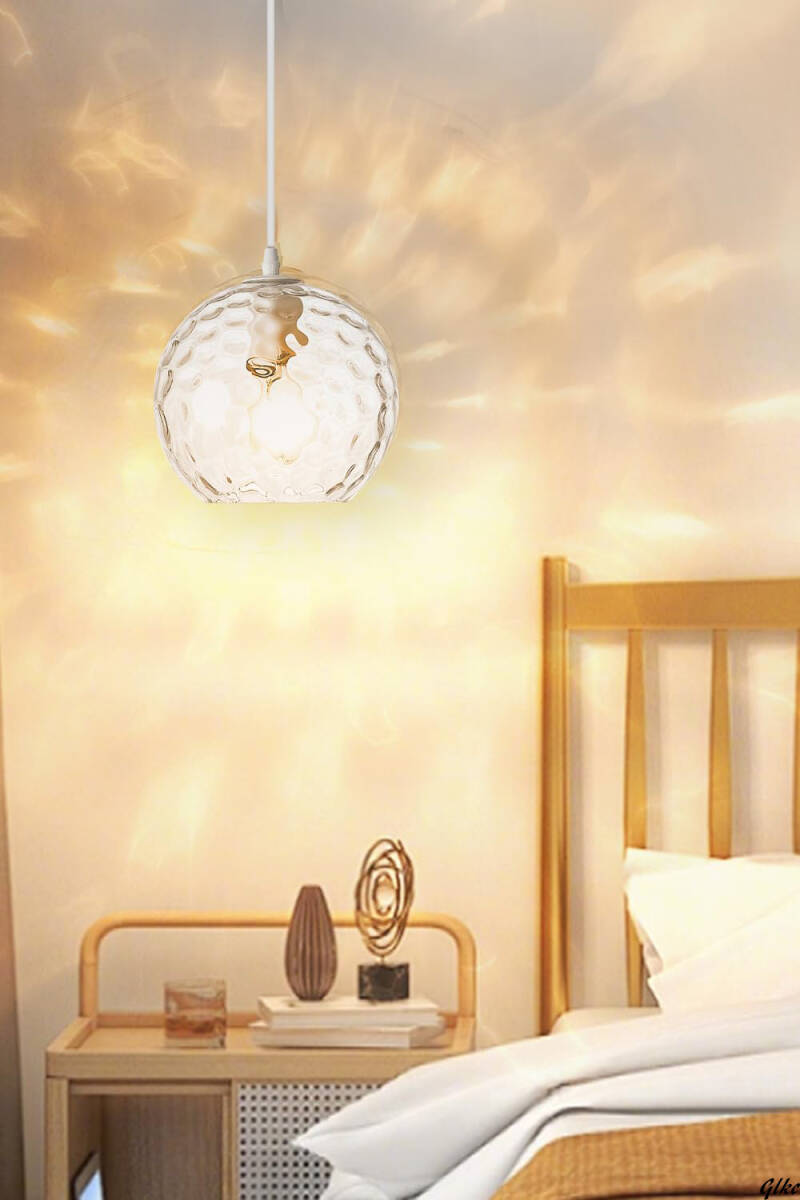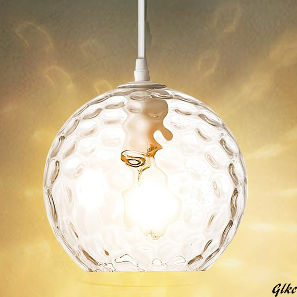 透明なガラスの内側にモール加工を施した、水面のように光が揺らめくペンダントライトです。