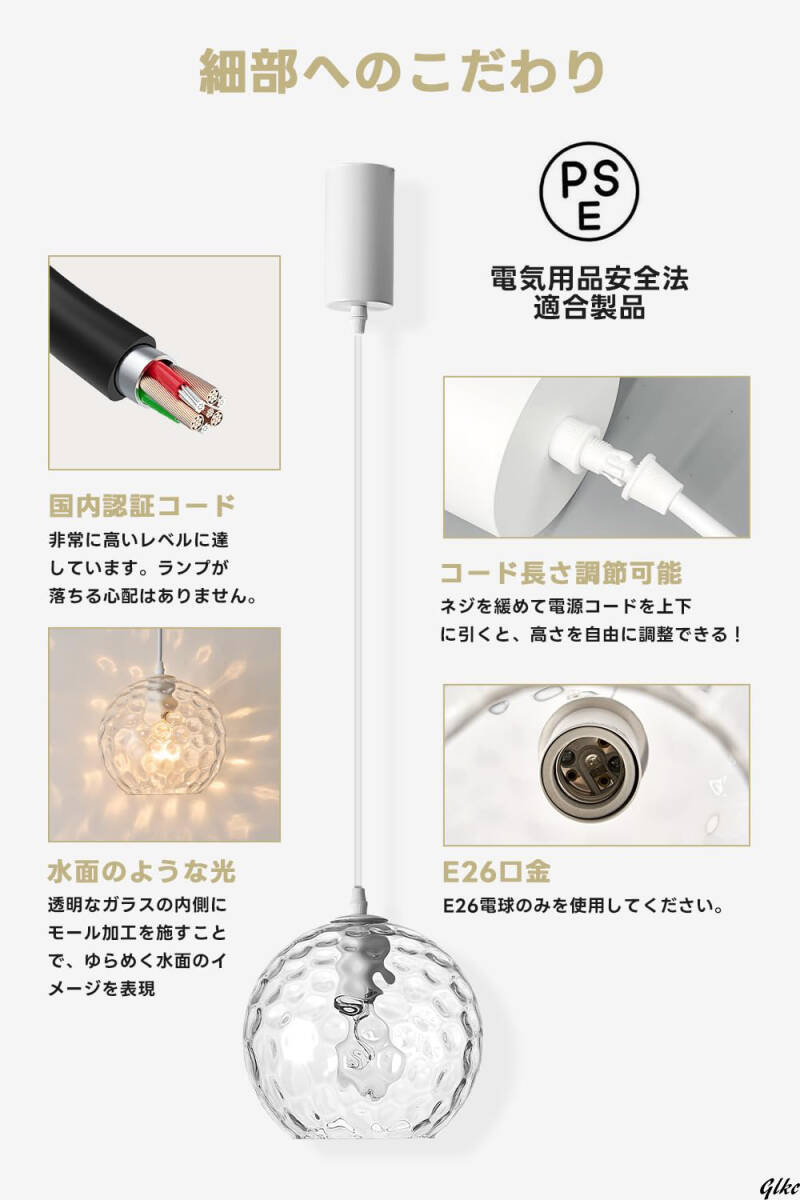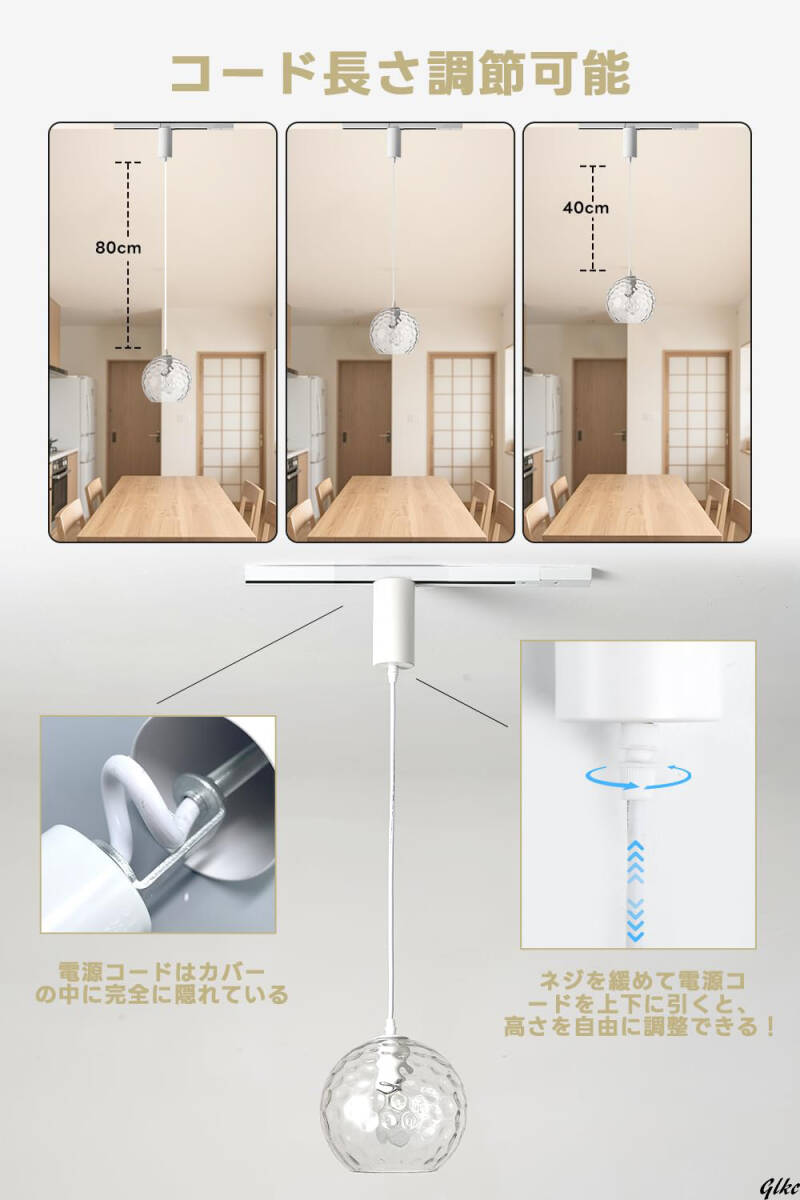 コードの長さは40〜80cmまで自由に調整でき、お好みの高さで空間を演出できます。