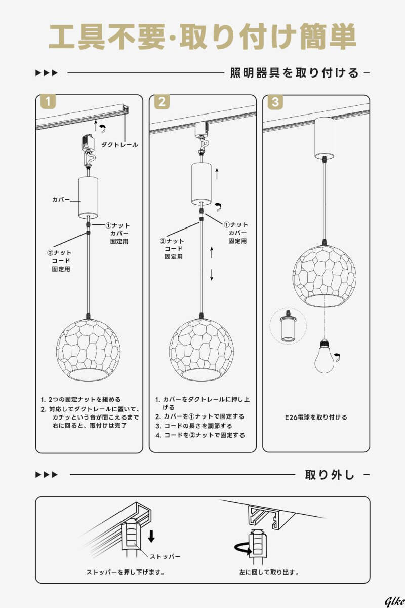 ・取り付け方法:ダクトレール対応、引掛シーリング式(工具不要)