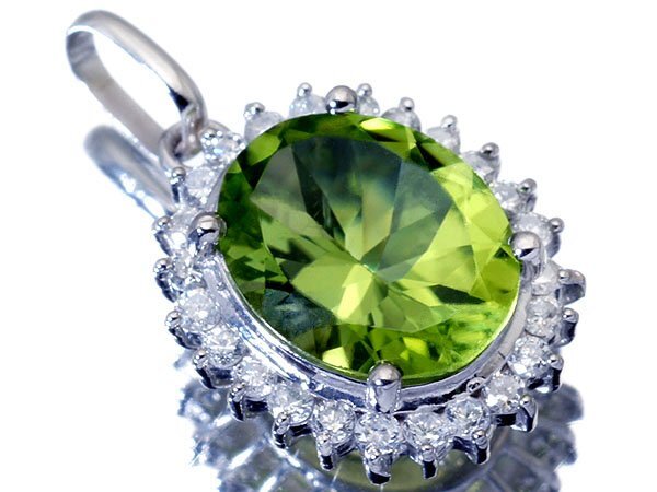鮮やかなオリーブグリーン煌く良質天然ペリドット&ダイヤモンド総計0.30ctを素敵に宝飾した、高級Pt900ペンダントヘッドを1円から特別大放出致します!