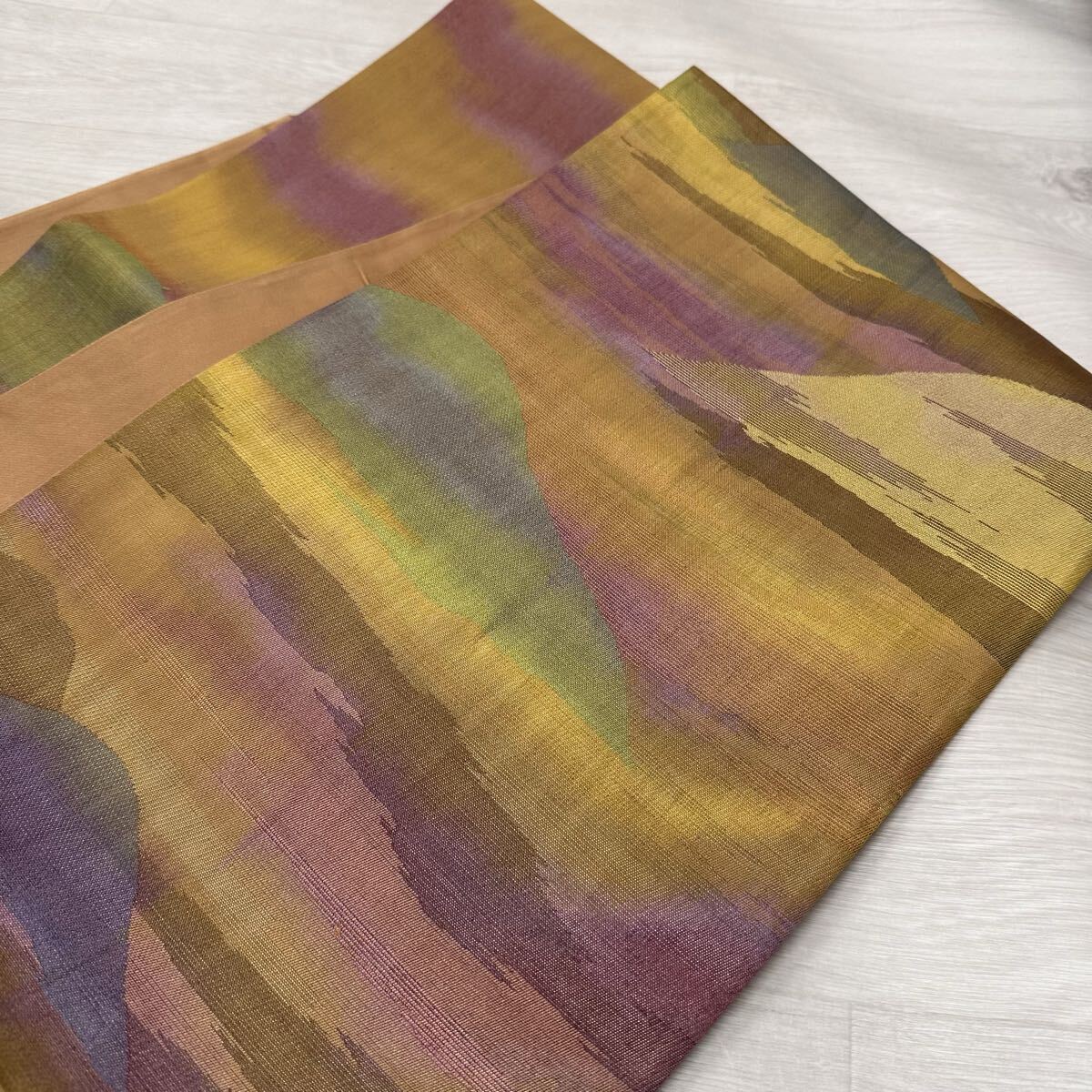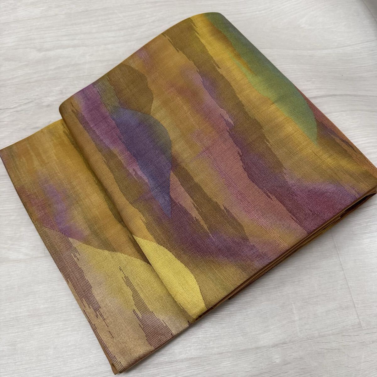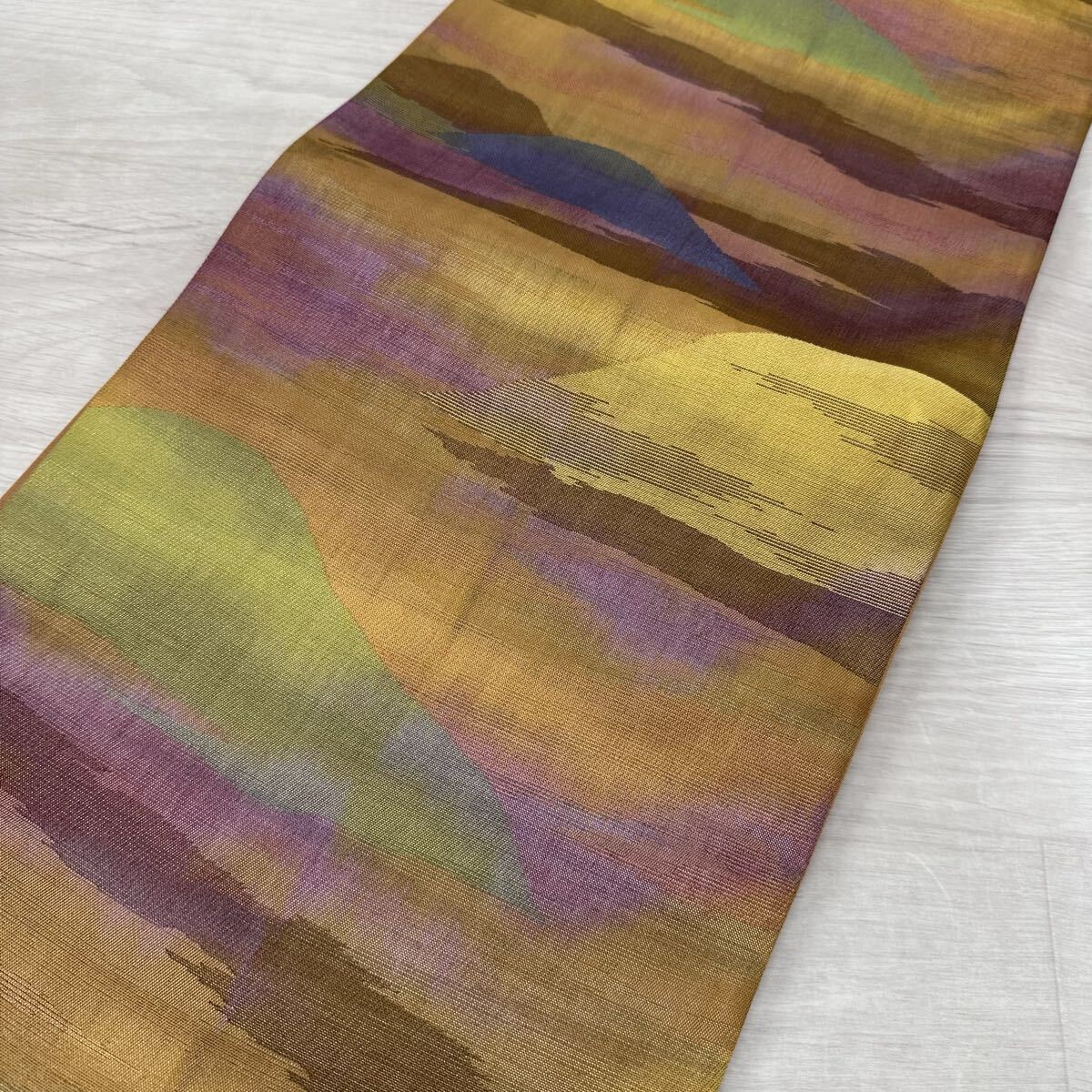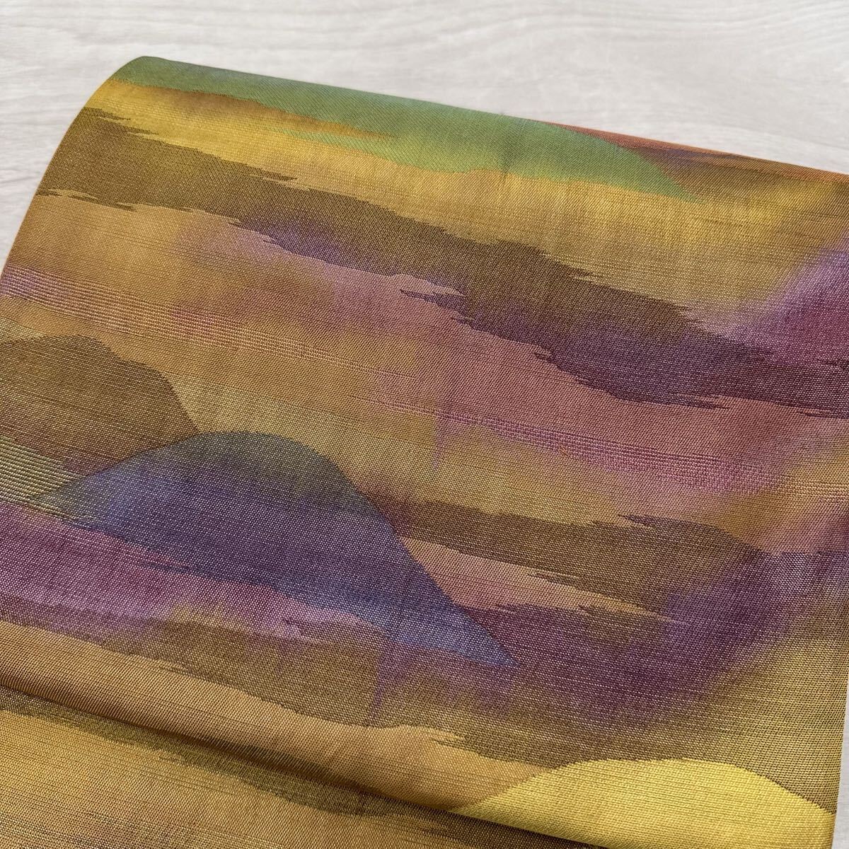 京袋帯 山間の風景織出し 化繊 着物 Q-100