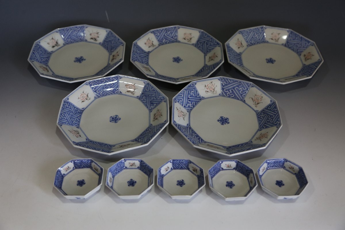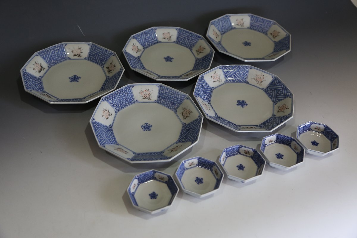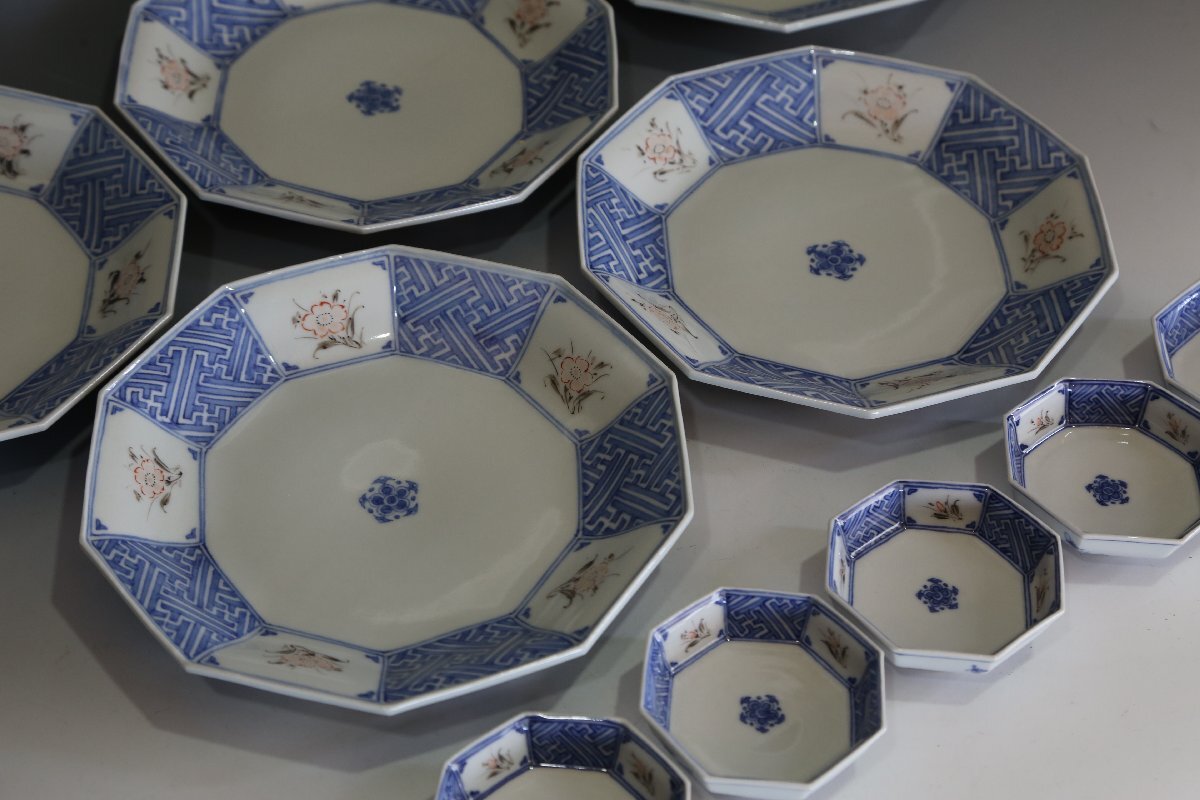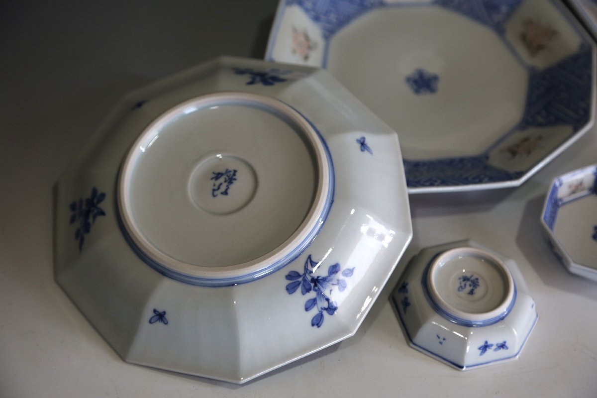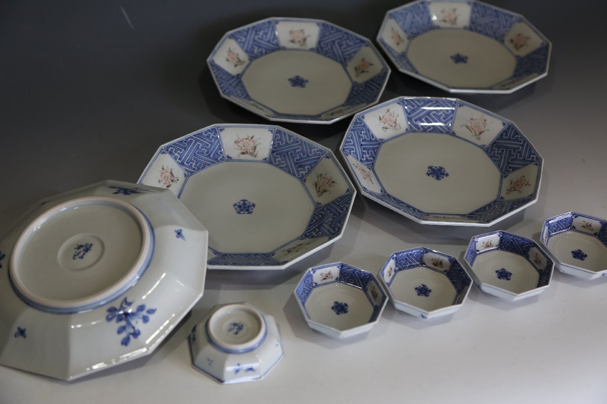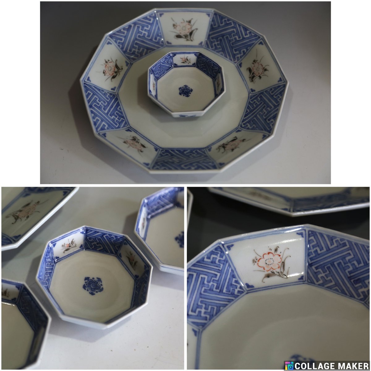 ★★★ 未使用 渋草焼 戸田柳造 染錦 八角皿5客 小皿5客 ★★★ 78