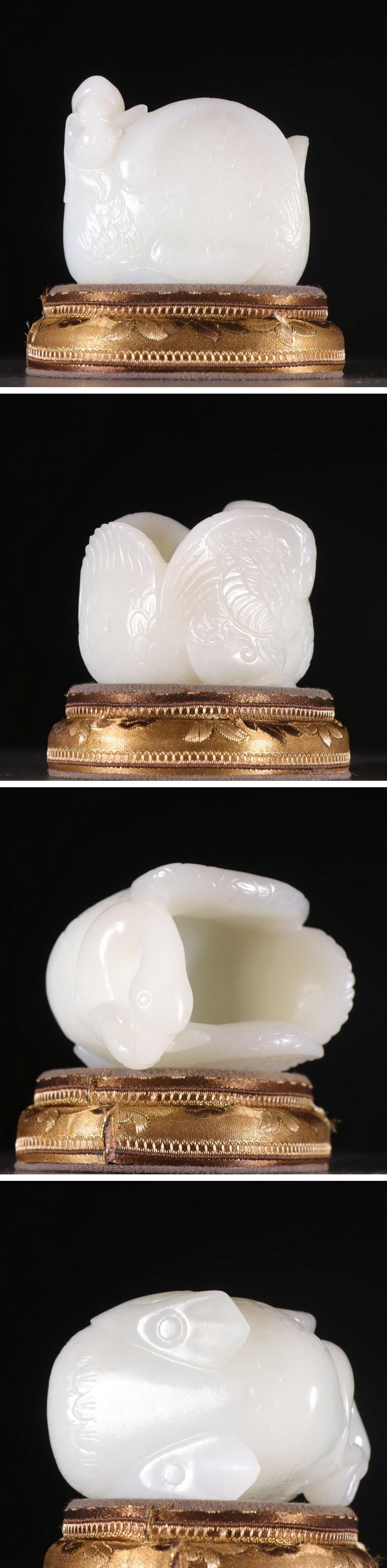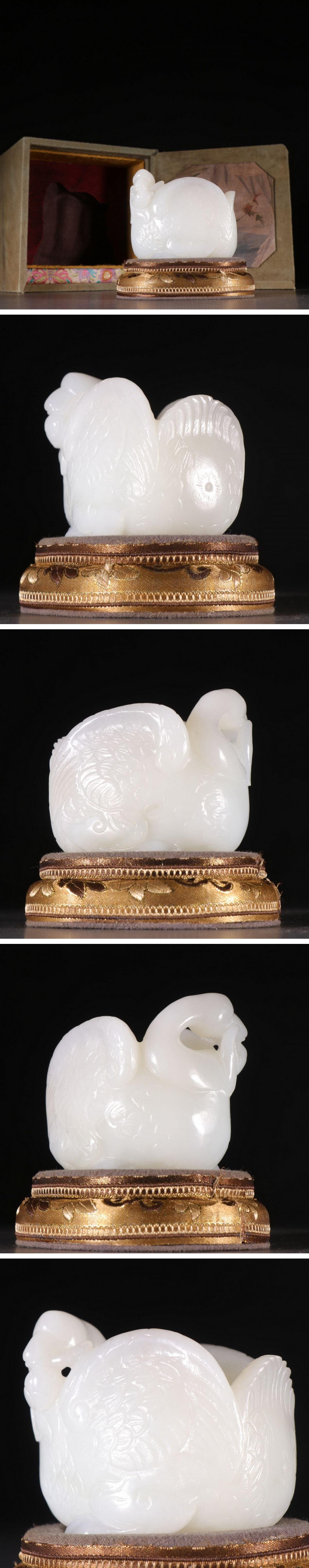 【清】某有名オークション購入 清時代 和田玉 玉鵝紋筆洗 材質保証 共箱 古置物 古擺件 古美術 時代コレクション7L9-HF14