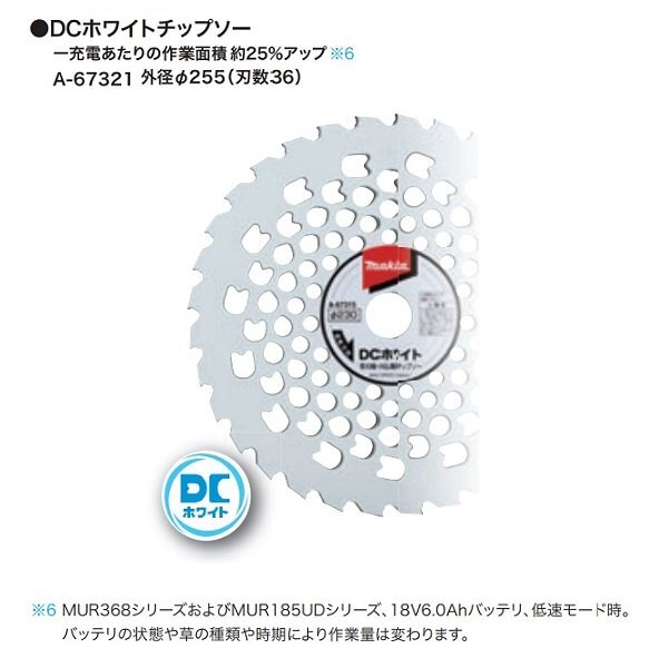 マキタ製の草刈り機用 DCホワイトチップソーのφ255mmX刃数34P(A-67321)です。