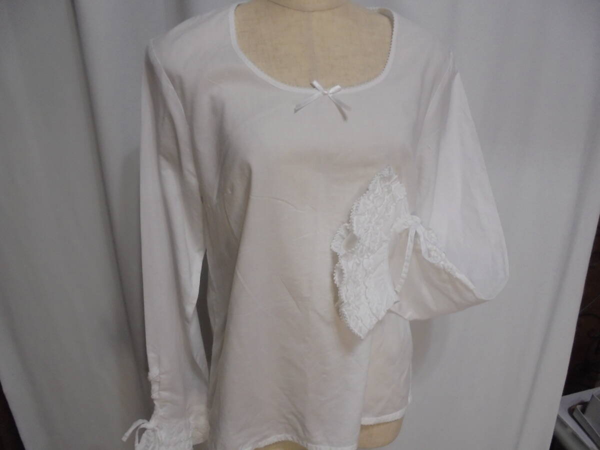 □商品詳細・・・ピンクハウス☆美品☆フリル袖☆可愛いリボン☆綺麗なレース☆長袖ブラウス☆綿シャツ☆人気の白色です。