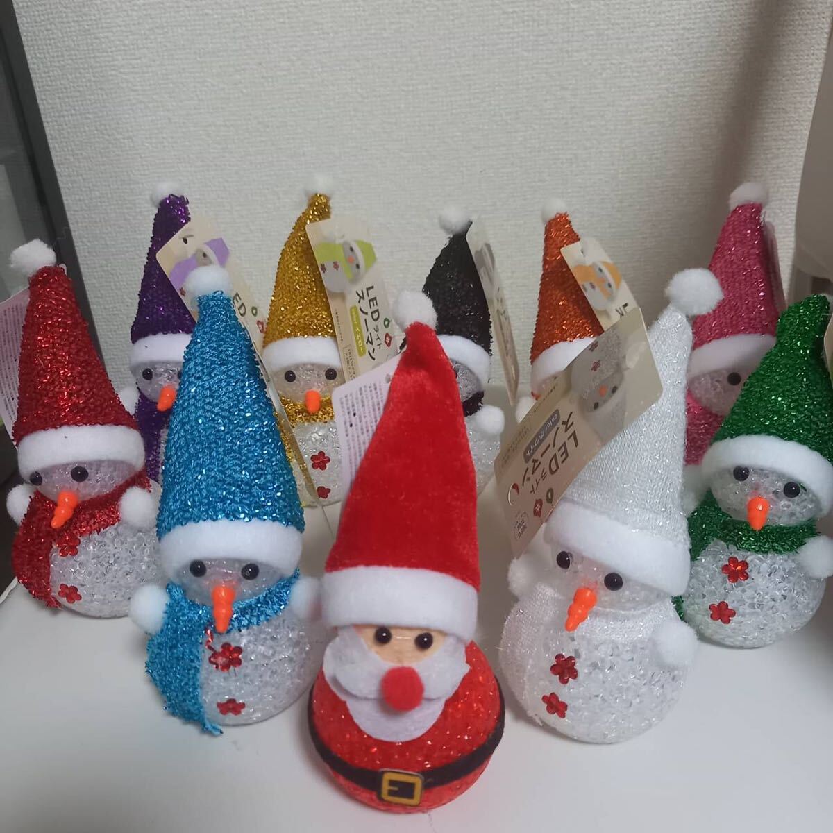 多彩な色のグリッター雪だるまとサンタの飾り。